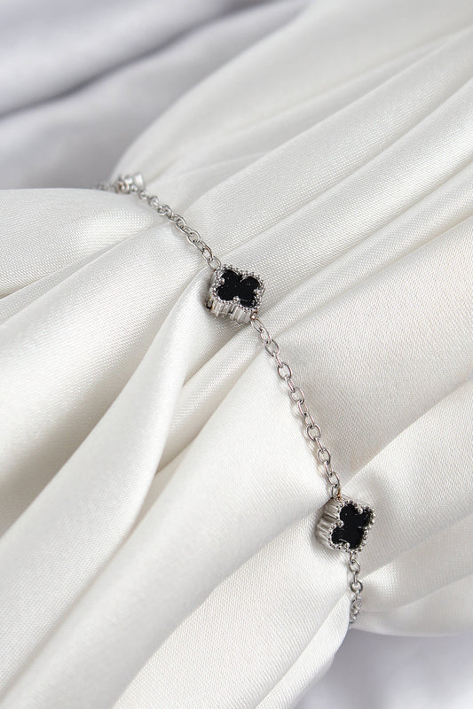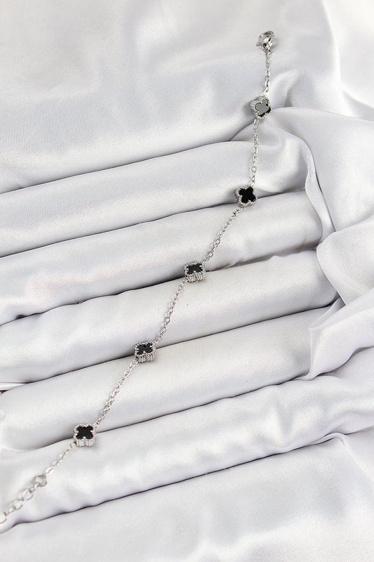 BB7360 - 316L Çelik Siyah Sedef Yonca Model Gümüş Renk Kadın Bileklik
