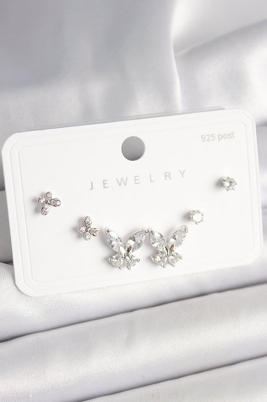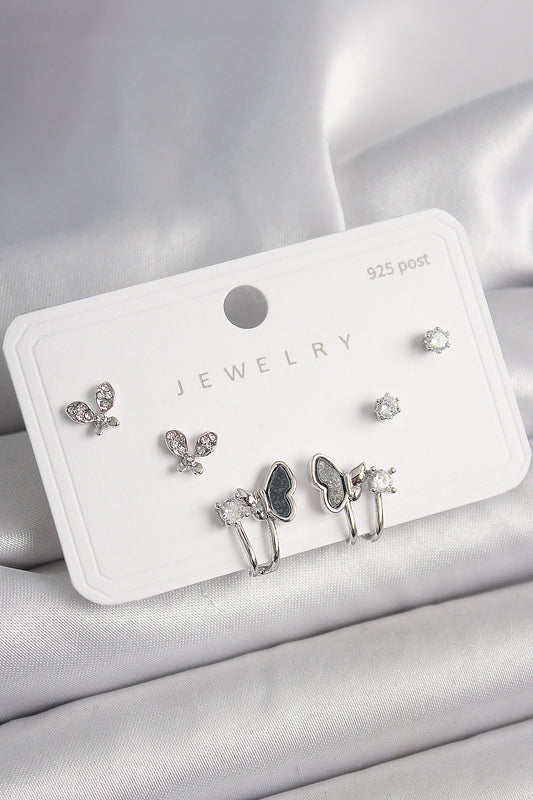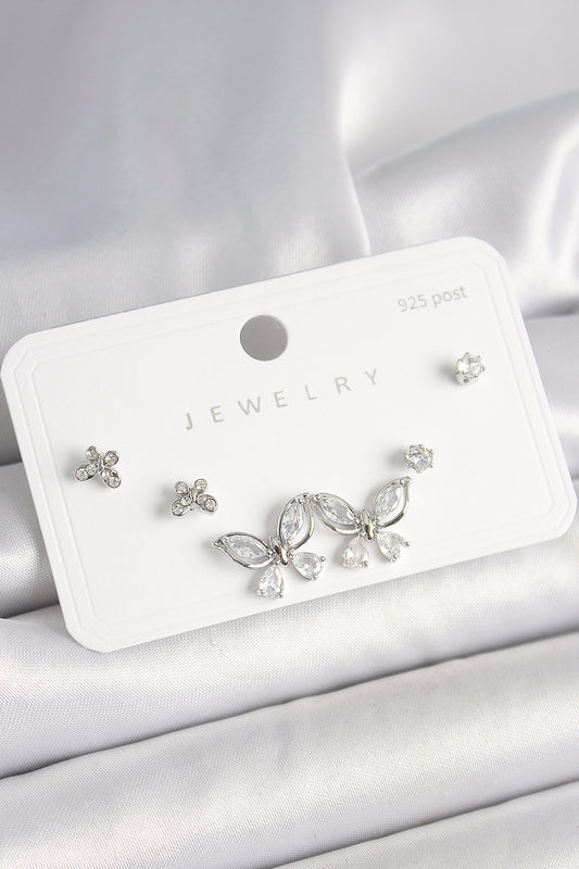 BKP10402 - 925 Ayar Gümüş Çivi Pirinç Zirkon Taşlı Kelebek Model Kadın Küpe Seti