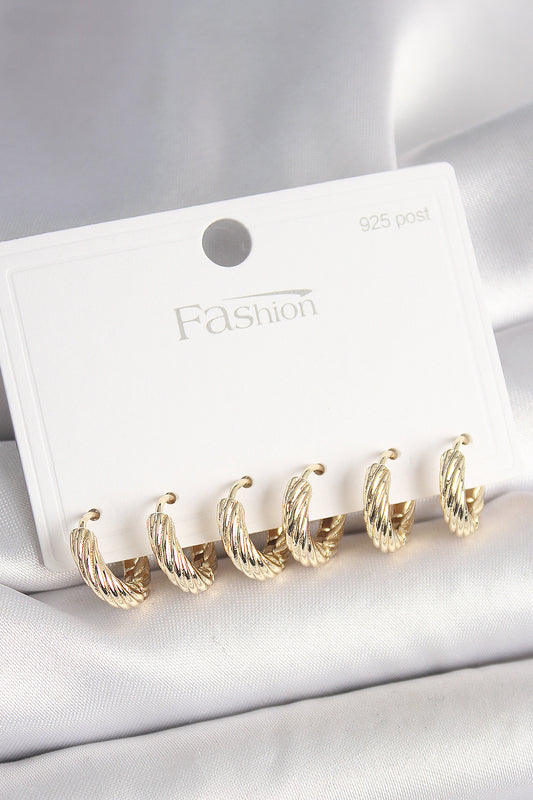 BKP10411 - 925 Ayar Gümüş Çivi Pirinç Gold Renk İşlemeli Halka Model Kadın Küpe Seti