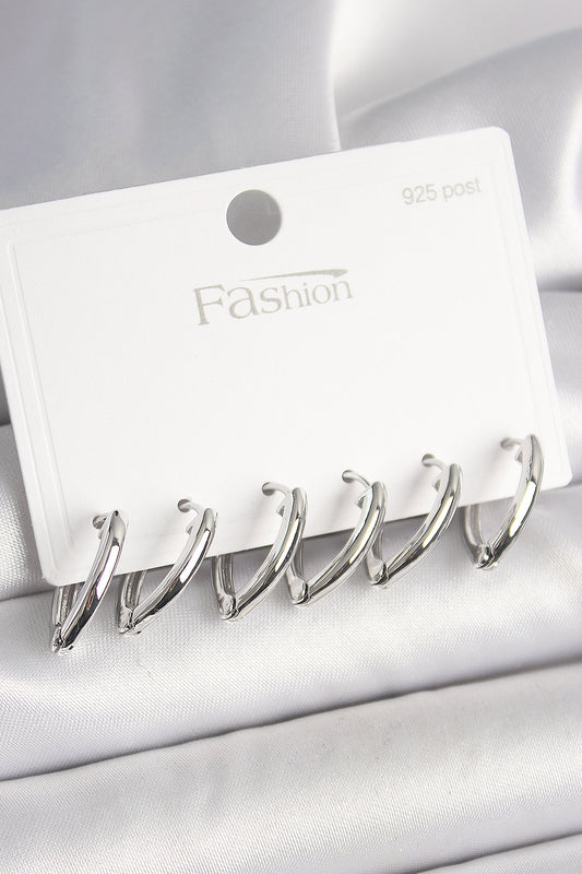 BKP10800 - Pirinç Zirkon Taşlı Halka Model Gümüş Renk 3'lü Çift Kadın Küpe Set