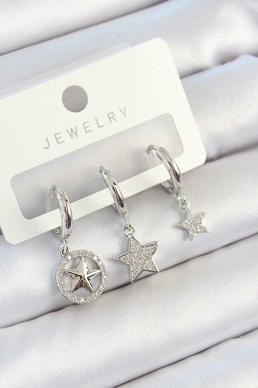 BKP10792 - Pirinç Zirkon Taşlı Sallantılı Yıldız Model Gümüş Renk 3'lü Çift Kadın Küpe Set