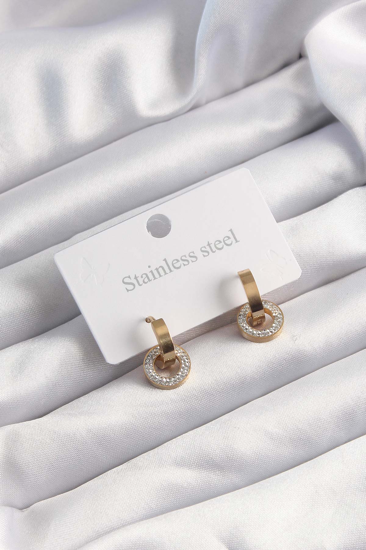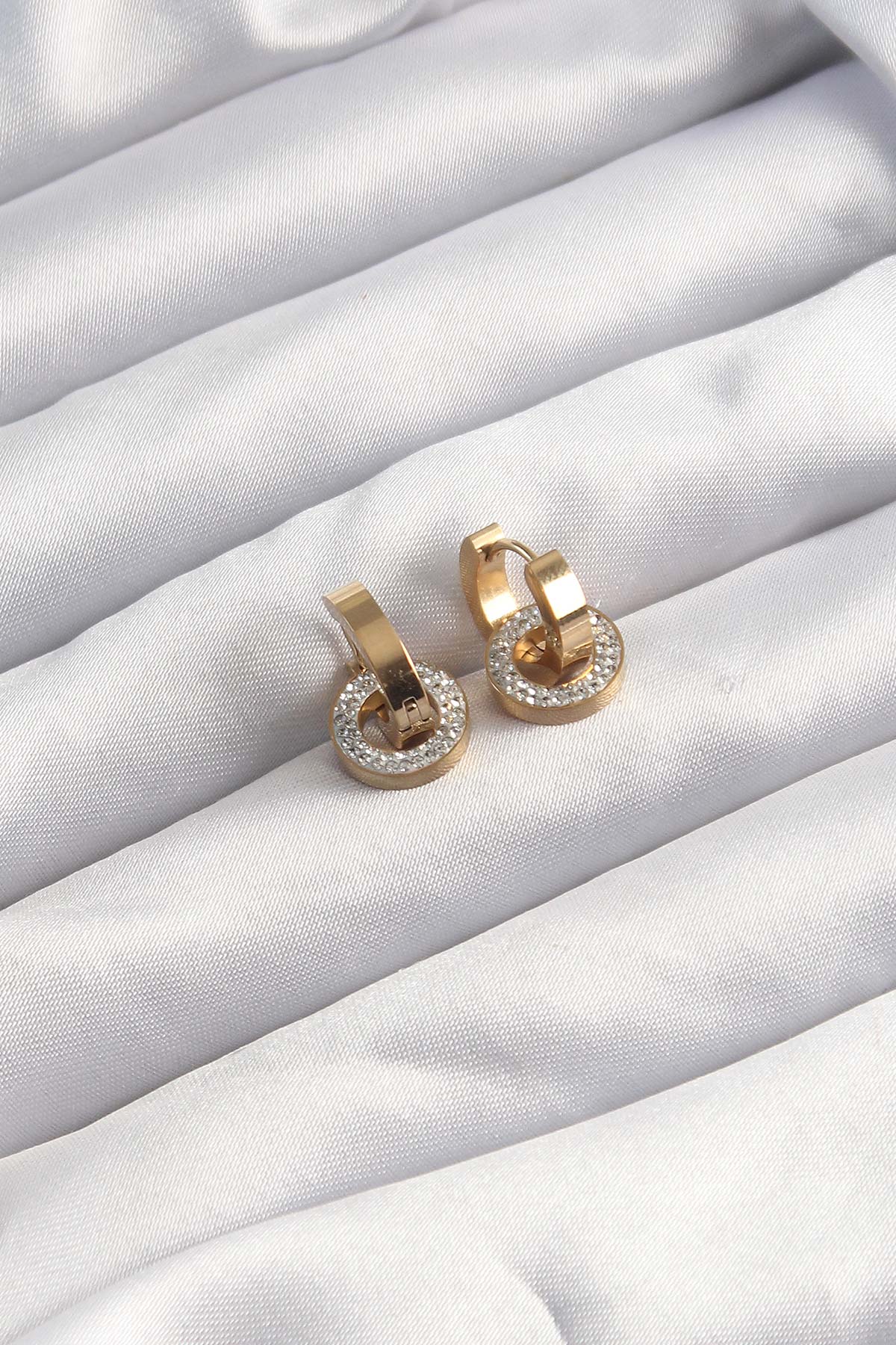 316L Çelik Altın Renk Zirkon Taşlı Halka Model Küpe - BKP9499