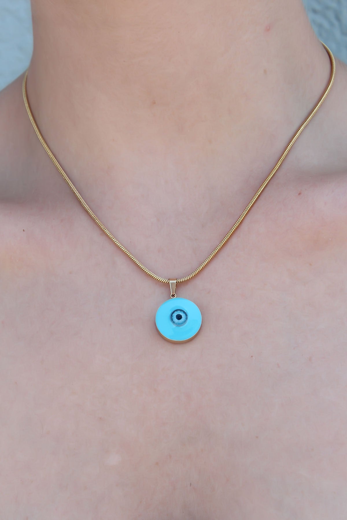316L Çelik Gold Renk Nazar Boncuk Model Kadın Kolye - BKO7391