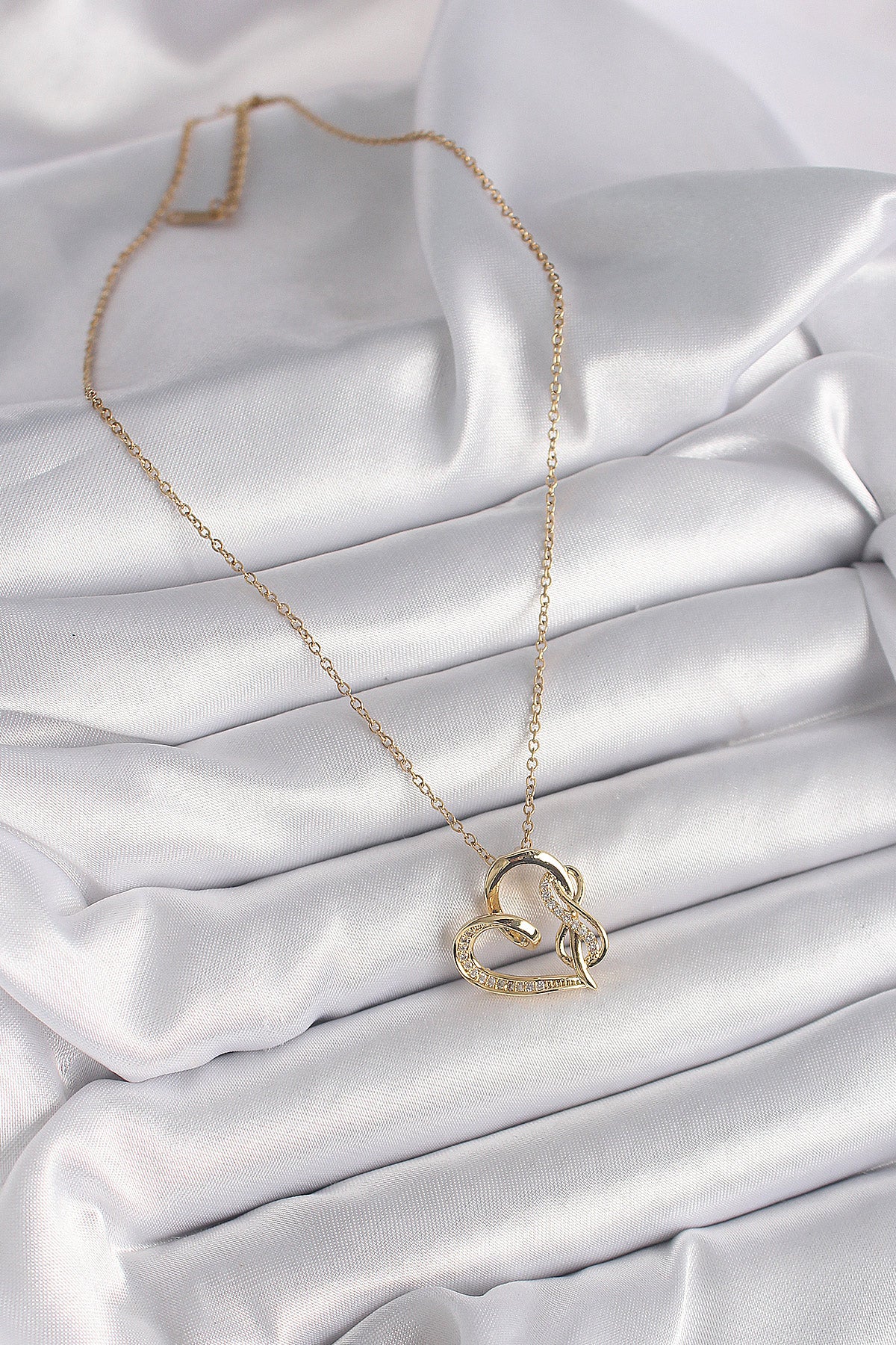 316L Çelik Gold Renk Zincir Zirkon Taş Detaylı Kalp Model Sonsuzluk Detay Kadın Kolye - BKO9583