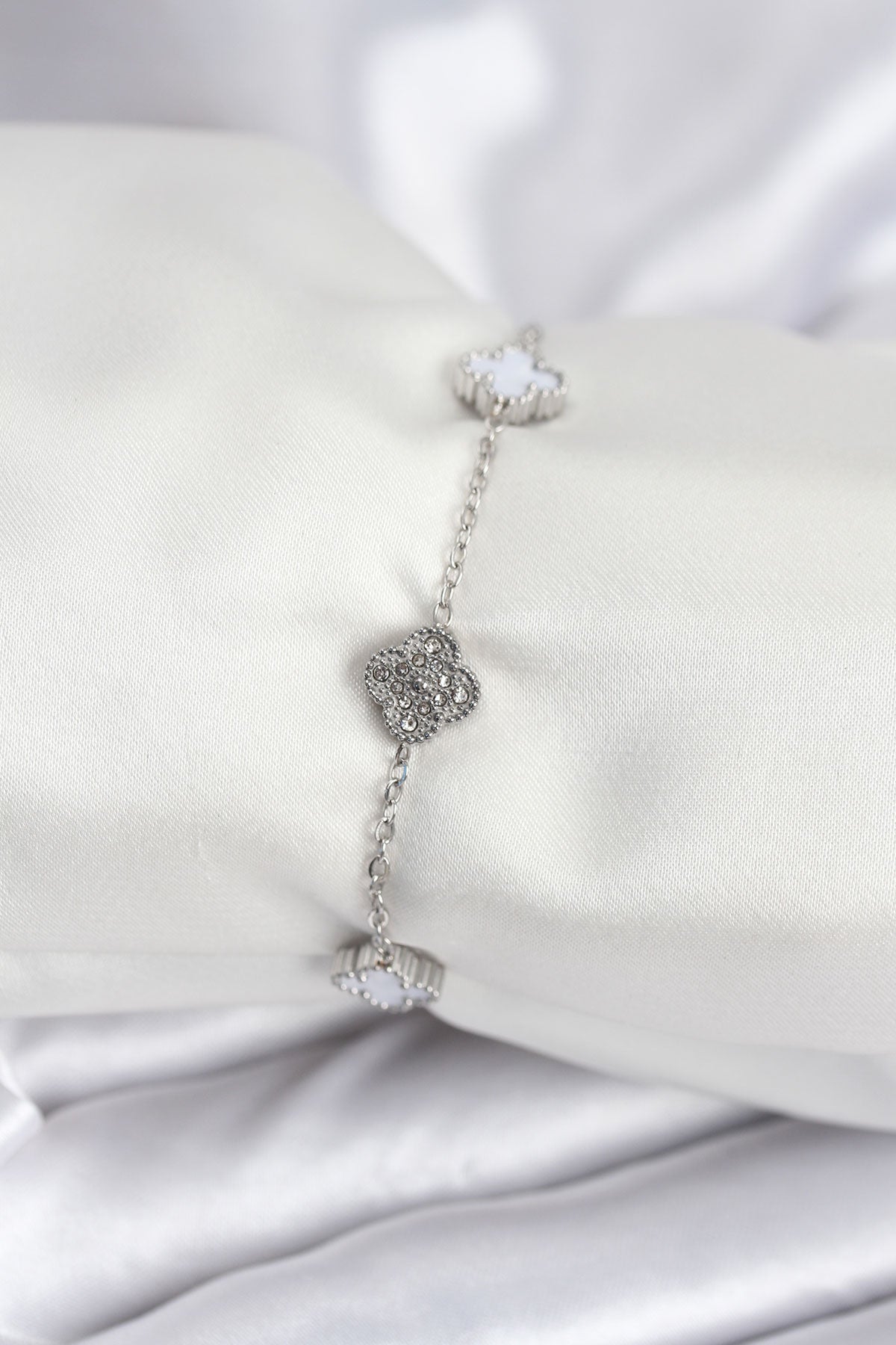 316L Çelik Gümüş Renk Beyaz ve Zirkon Taşlı Baby Boy Yonca Kadın Bileklik - BB7956