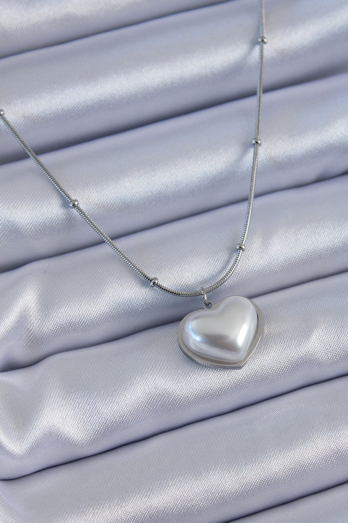 316L Çelik Gümüş Renk İncili Kalp Model Minimal Top Detay Kadın Kolye - BKO7614