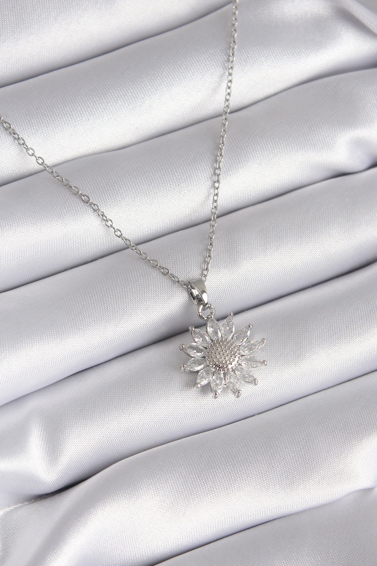 316L Çelik Gümüş Renk Papatya Model Kadın Kolye - BKO8320