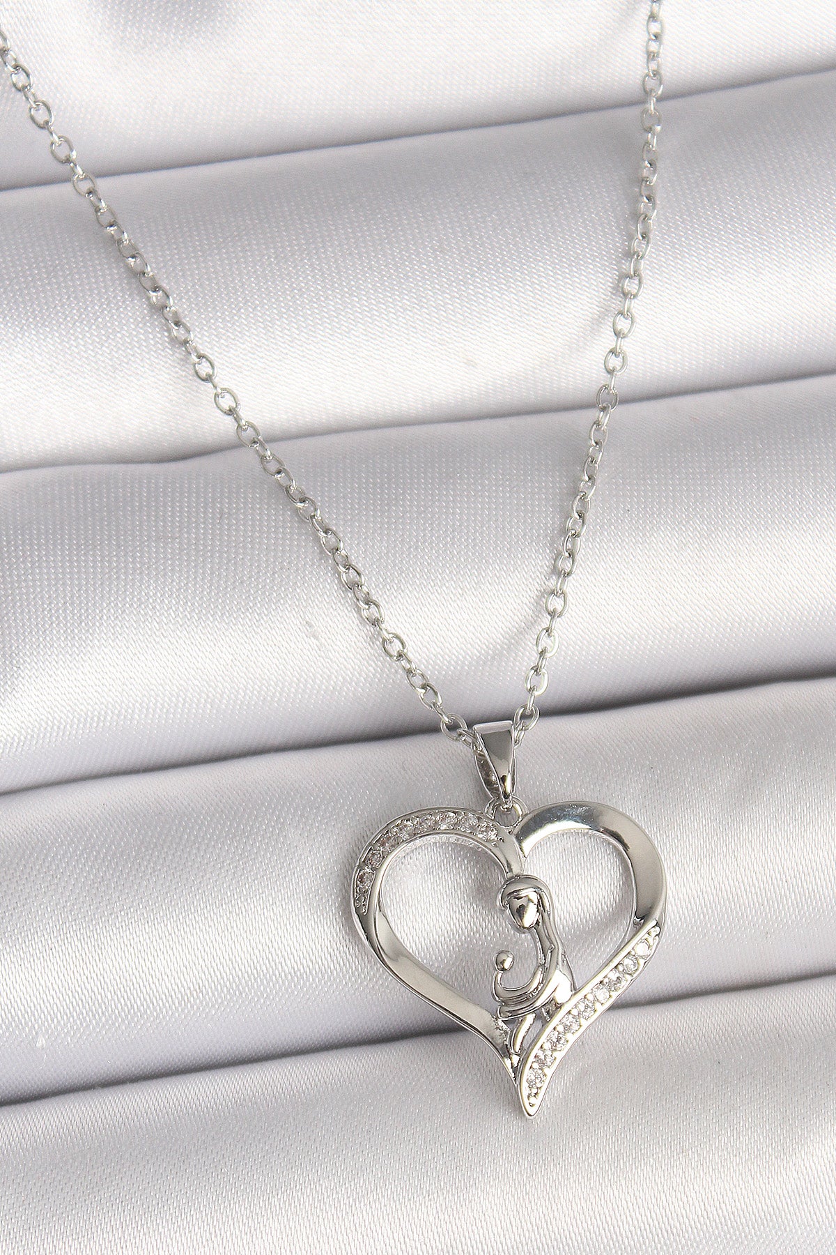 316L Çelik Gümüş Renk Zincir Zirkon Taş Detaylı Kalp Model Kadın Kolye - BKO9854
