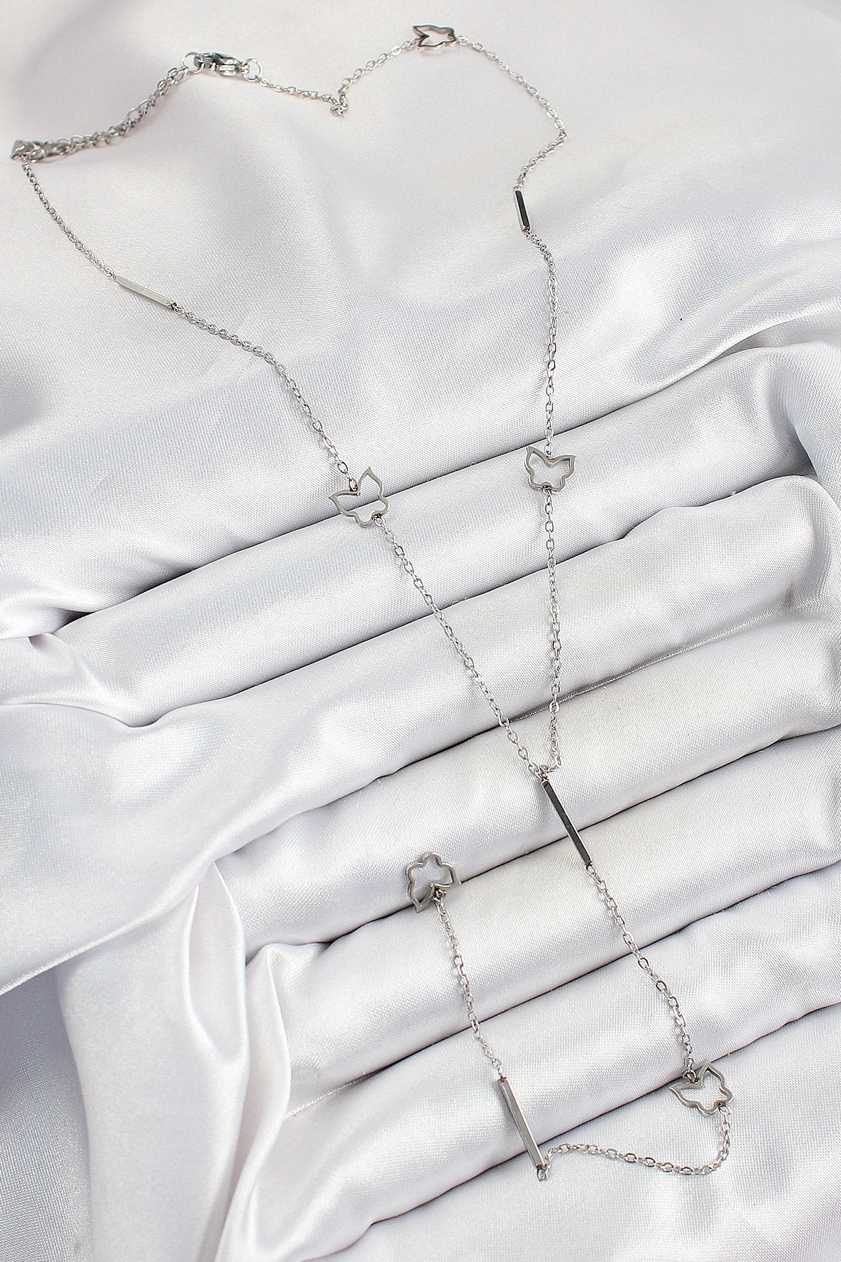 316L Çelik Kelebek Figürlü Y Model Gümüş Renk Kadın Kolye - BKO10330