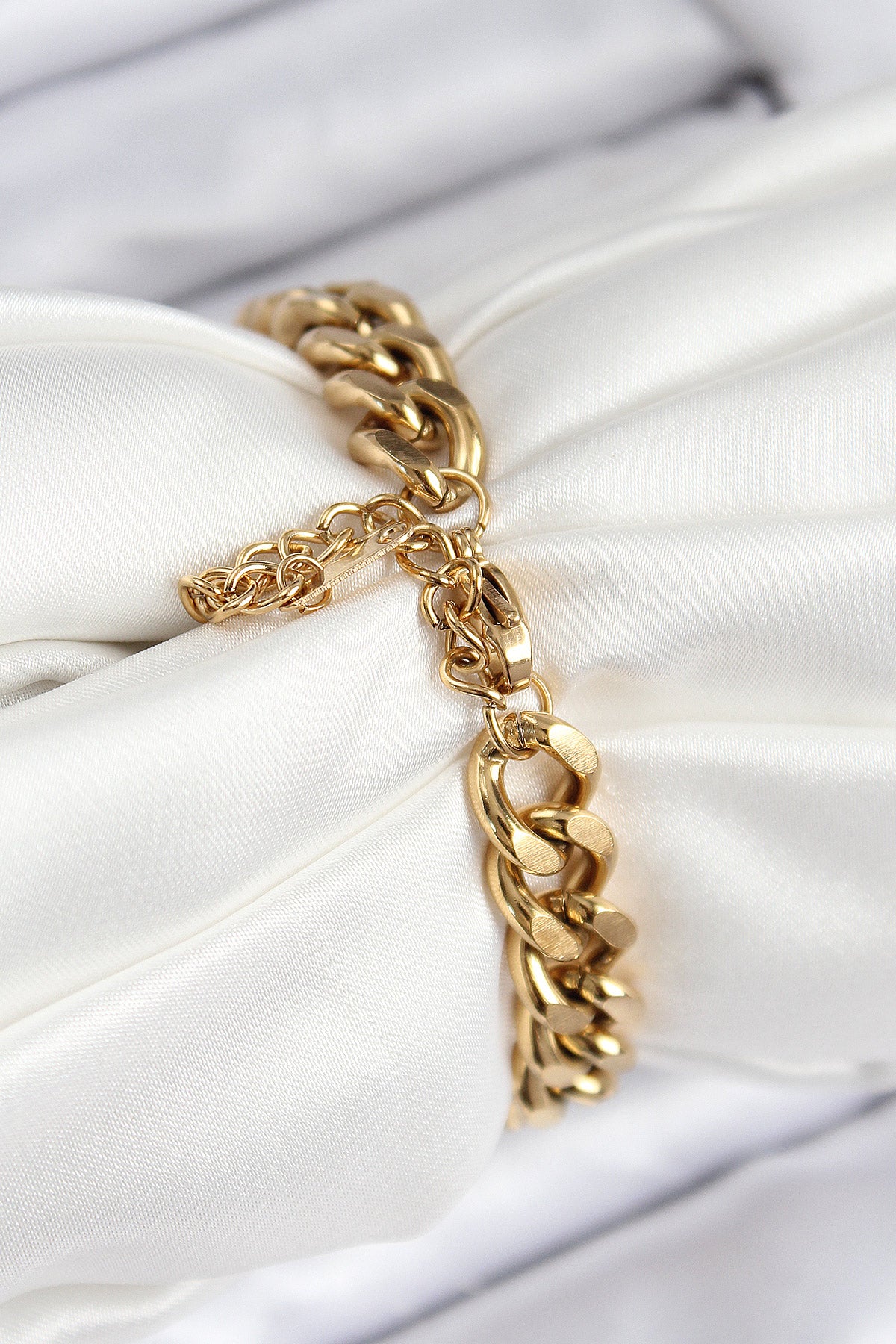 316L Çelik Klasik Kalın Zincir Model Gold Renk Kadın Bileklik - BB7786