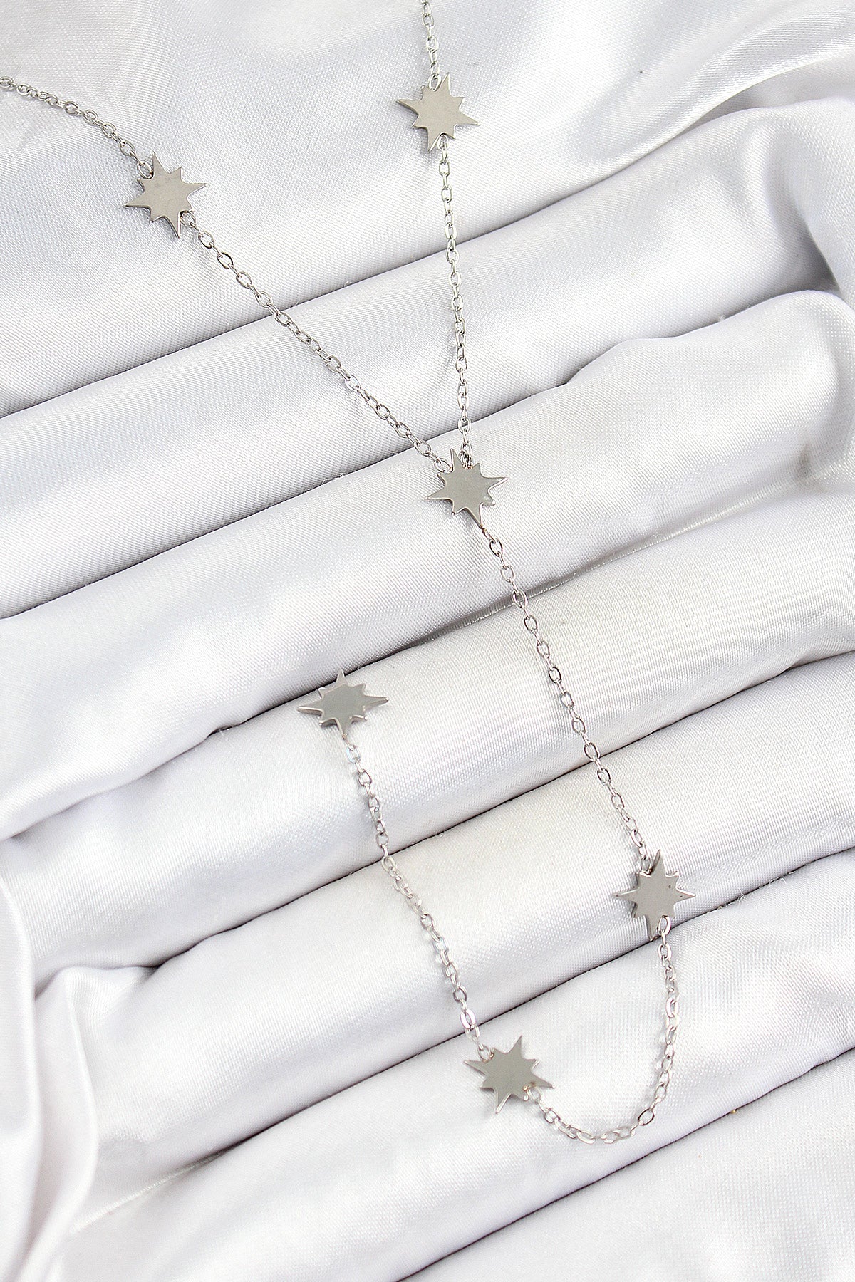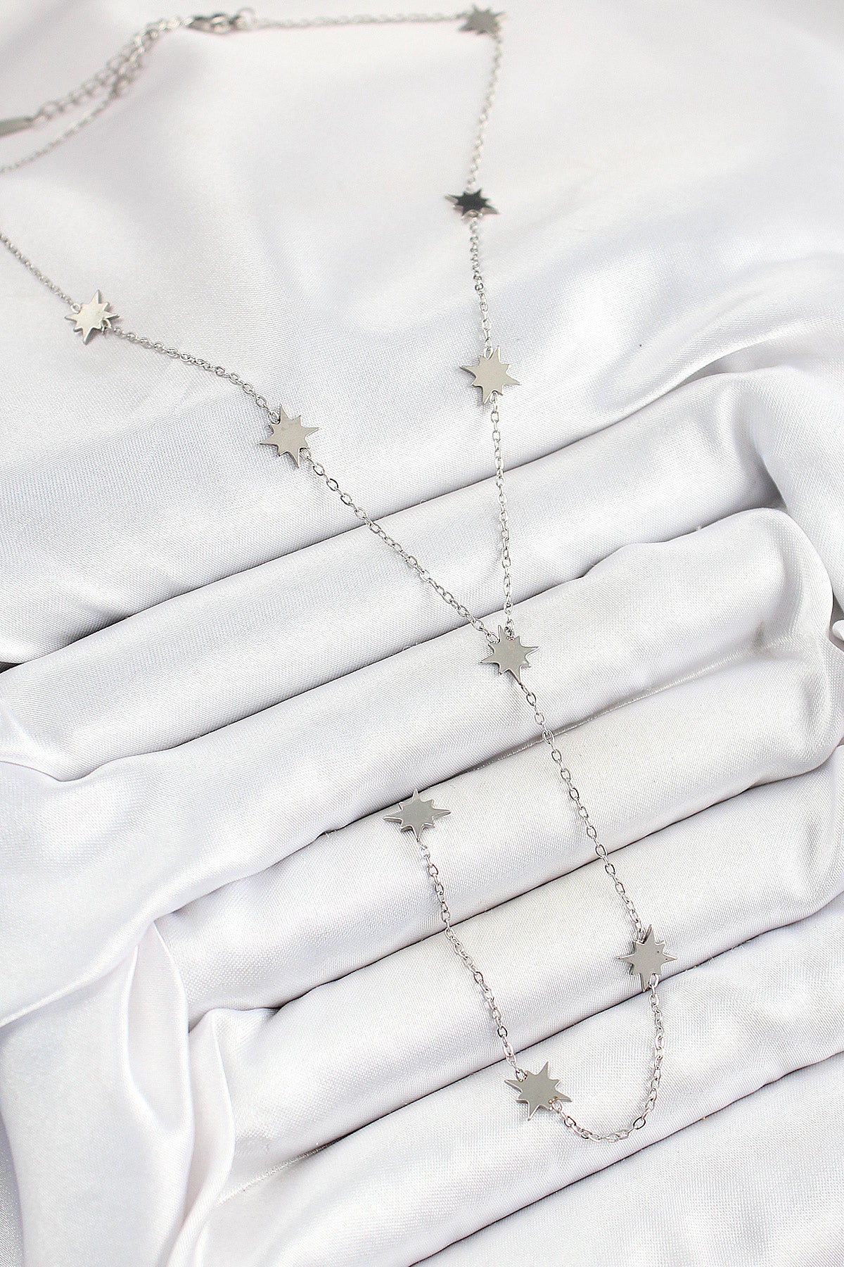 316L Çelik Kutup Yıldızı Figürlü Y Model Gümüş Renk Kadın Kolye - BKO10332
