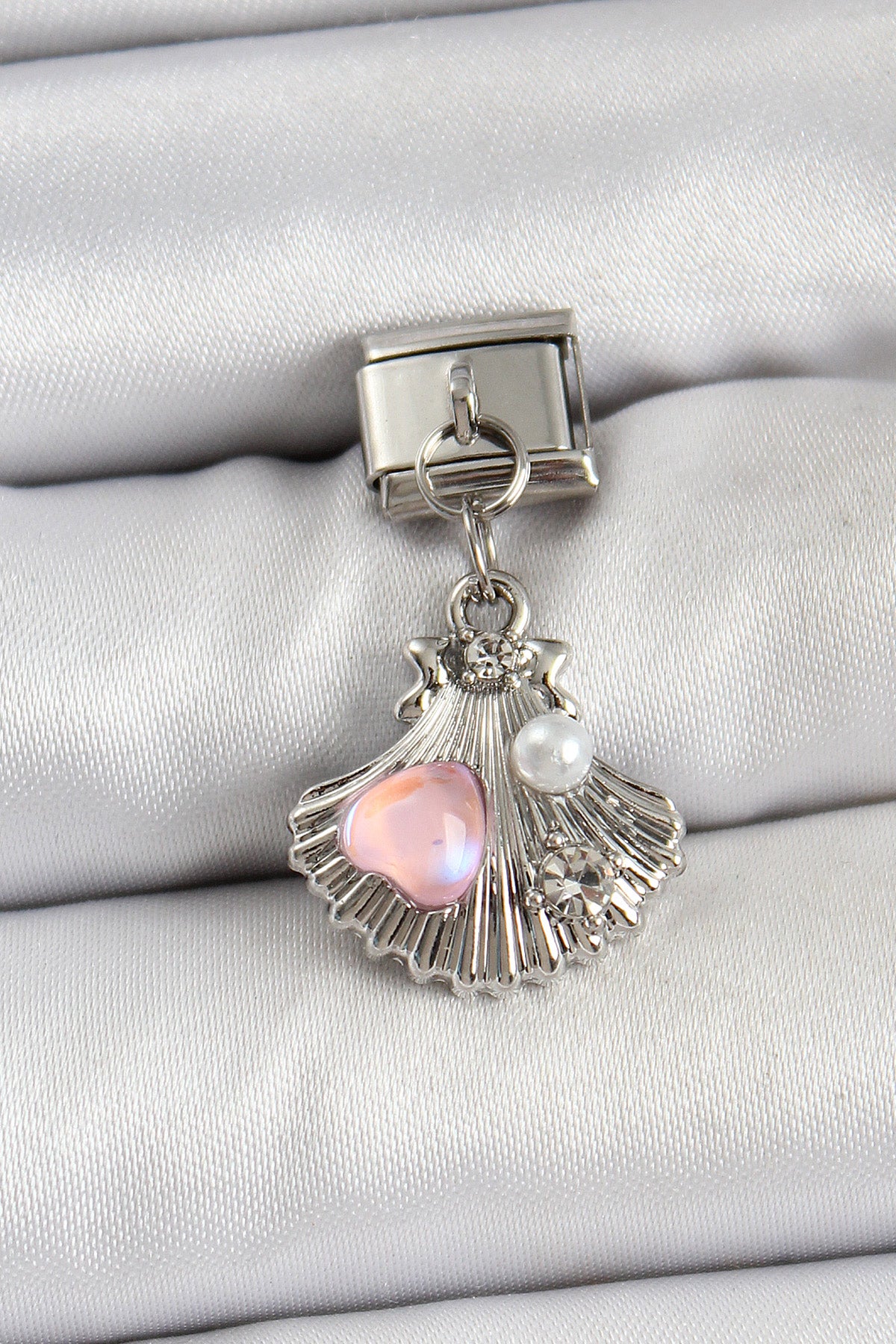 316L Çelik Sallantılı İnci Detaylı İstiridye Model Gümüş Renk Nomination Charm - BC1464