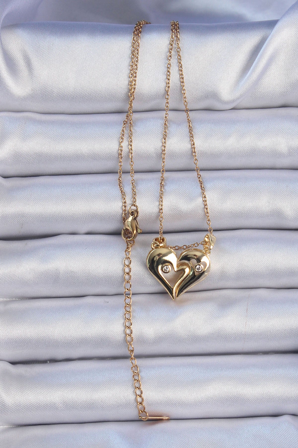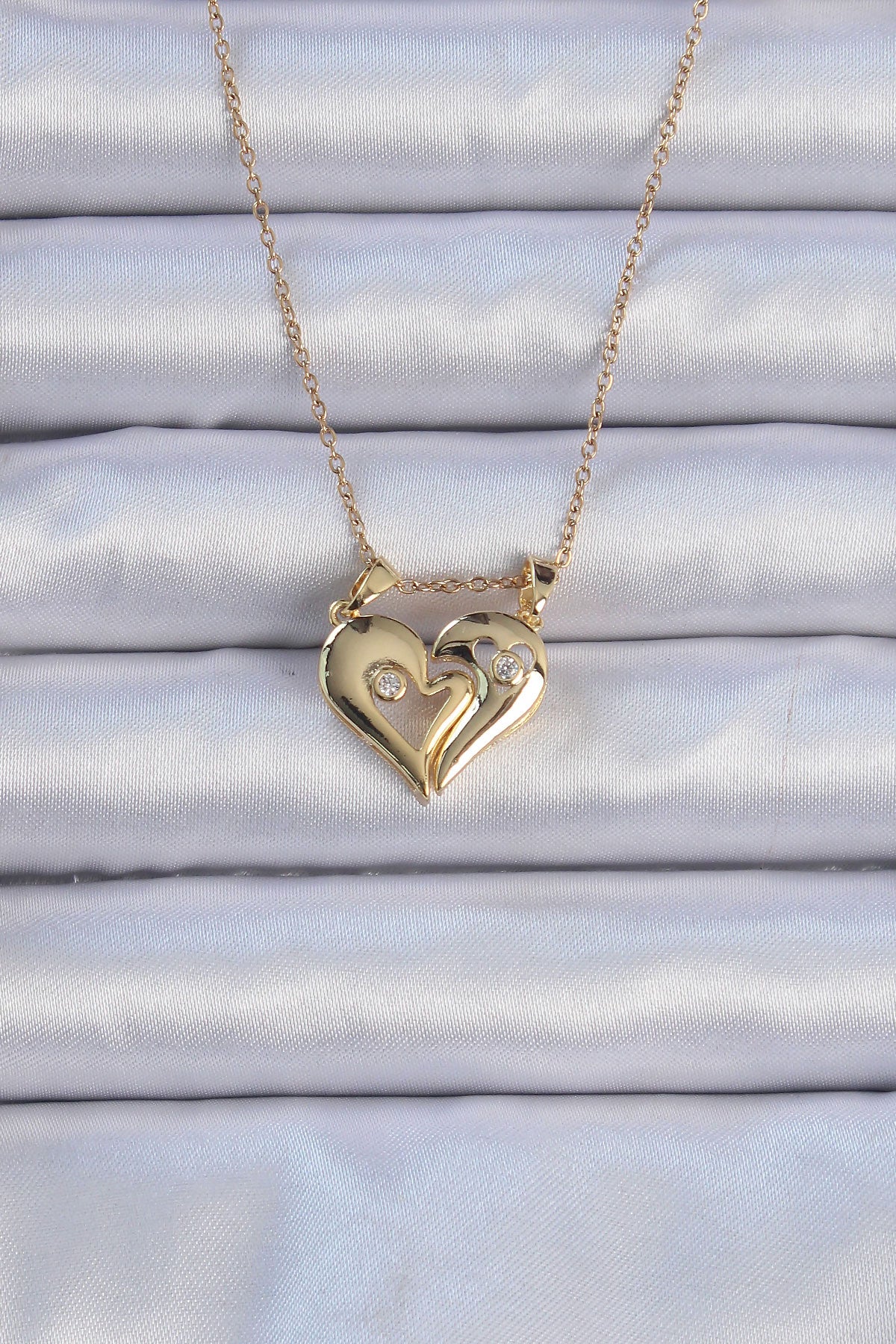 316L Çelik Zincir Altın Renk Zirkon Taşlı Mıknatıslı Kalp Kolye - BKO9081