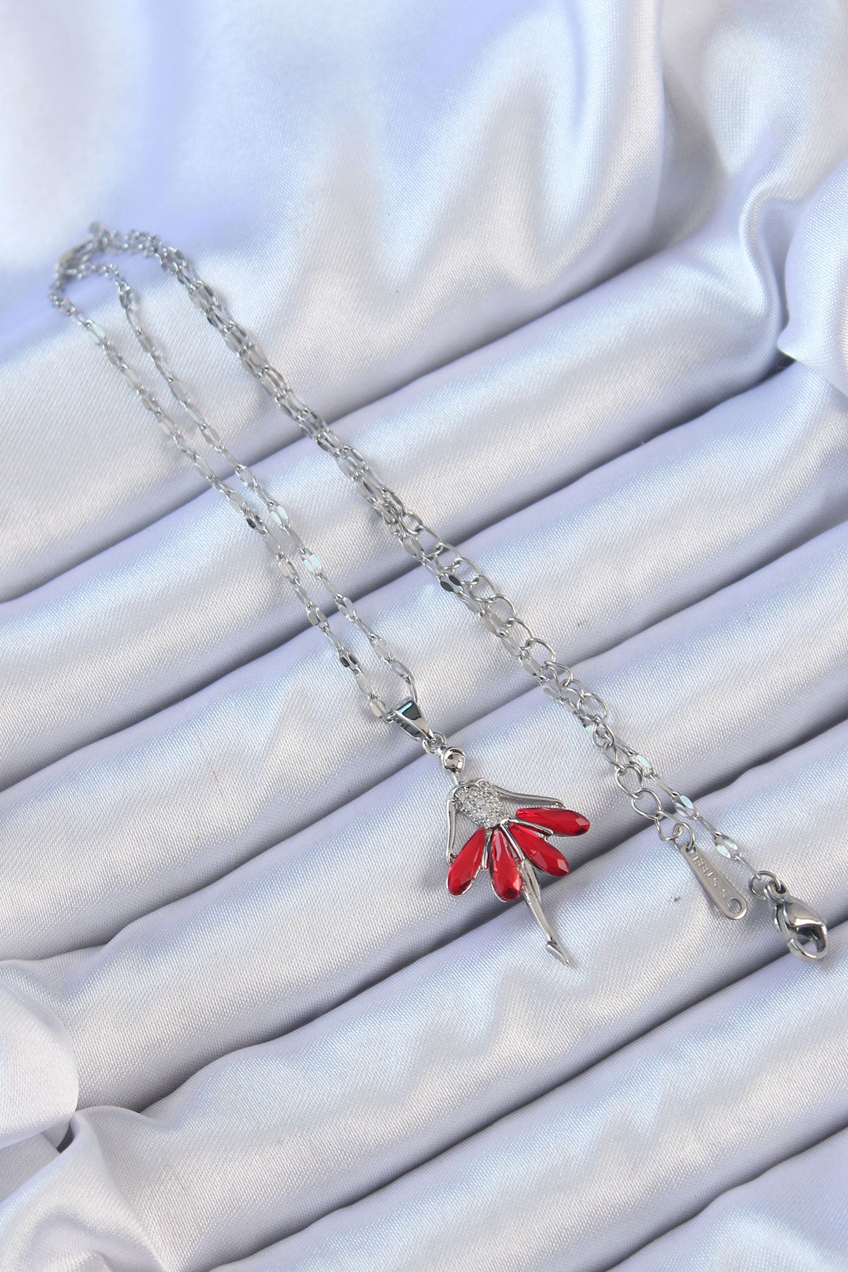 316L Çelik Zincir Gümüş Renk Kırmızı Etekli Zirkon Taşlı Balerin Kolye - BKO9100
