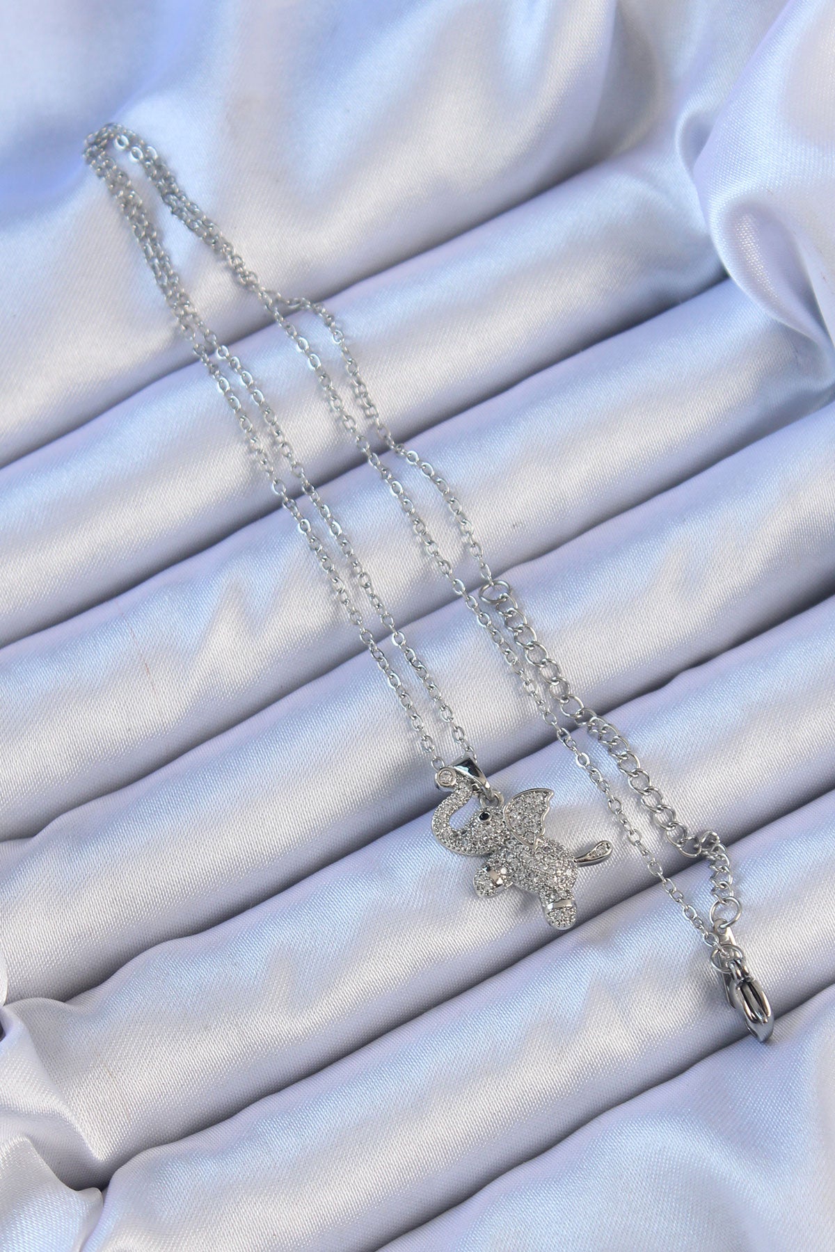316L Çelik Zincir Gümüş Renk Zirkon Taşlı Fil Kolye - BKO9092