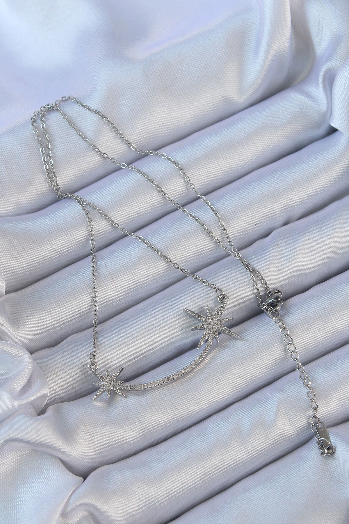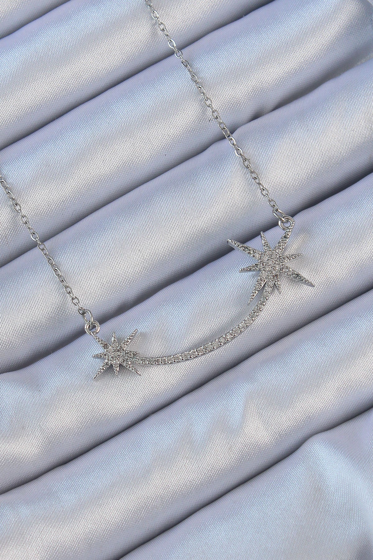 316L Çelik Zincir Gümüş Renk Zirkon Taşlı Kutup Yıldızı Kolye - BKO9140