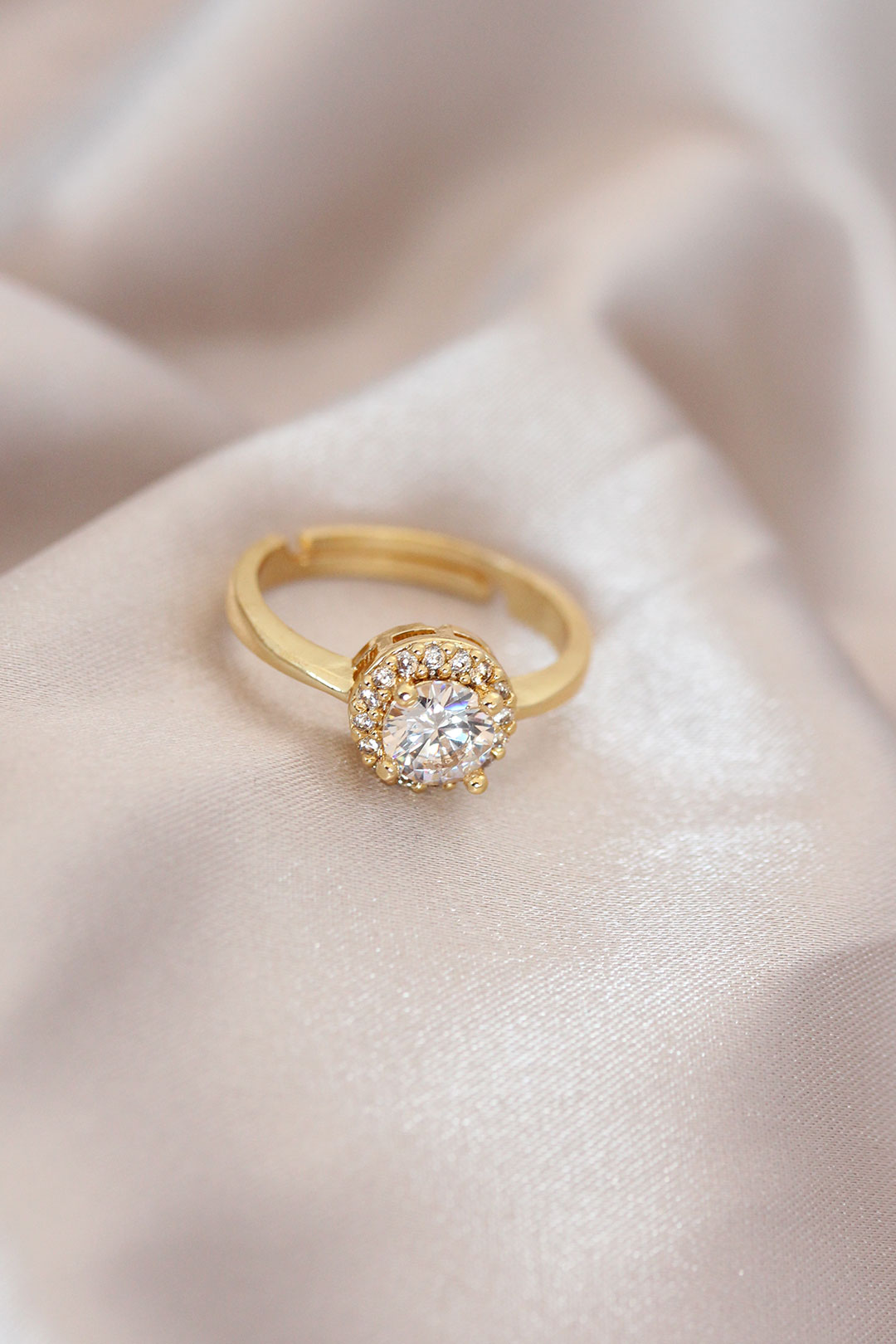 Ayarlamalı Altın Renk Metal Zirkon ve Kristal Taşlı Oval Model Yüzük - BYK2078