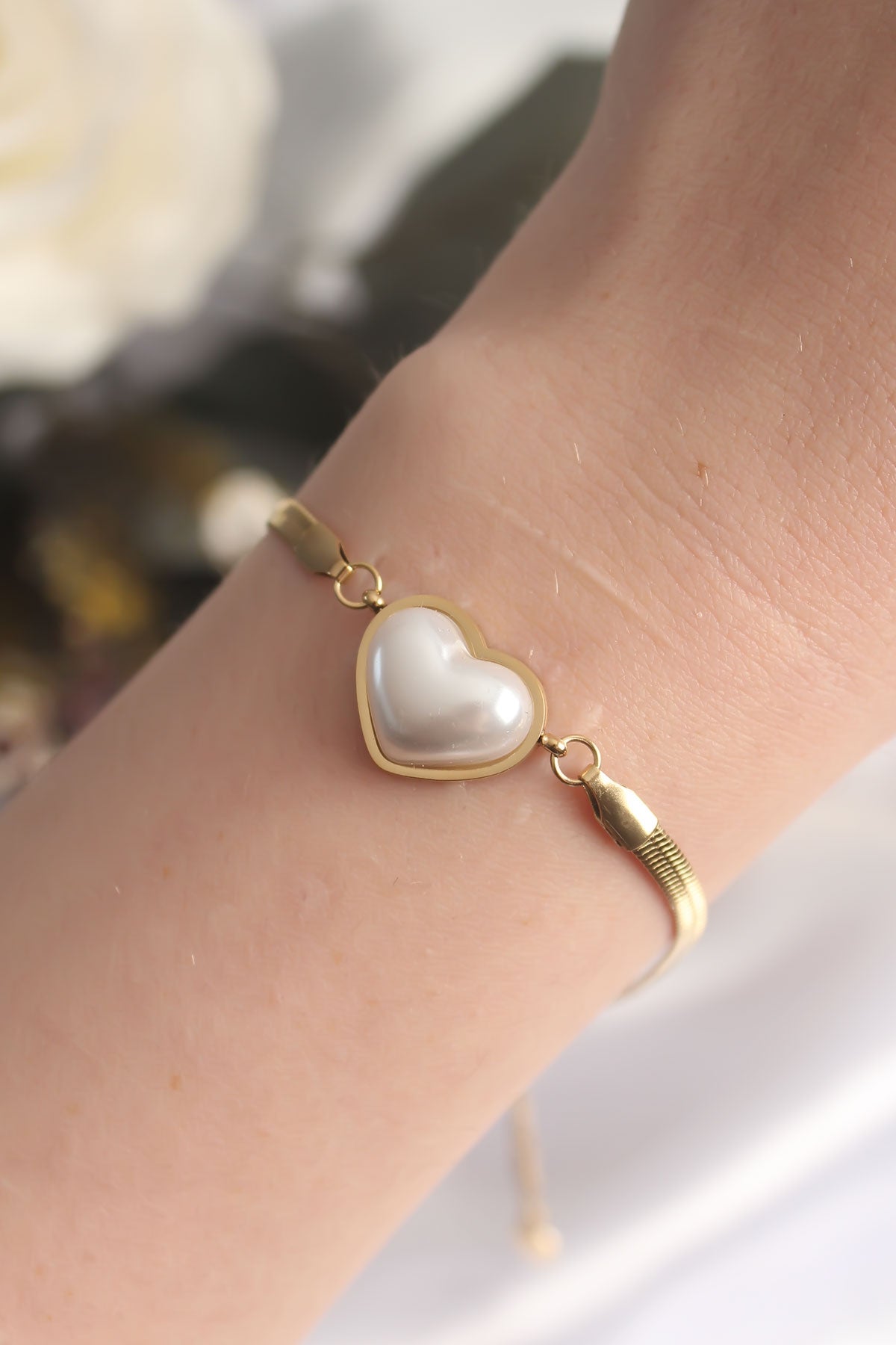 316L Çelik Gold Renk Bombeli Kalp Kadın Bileklik |