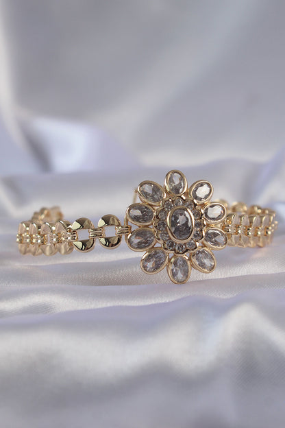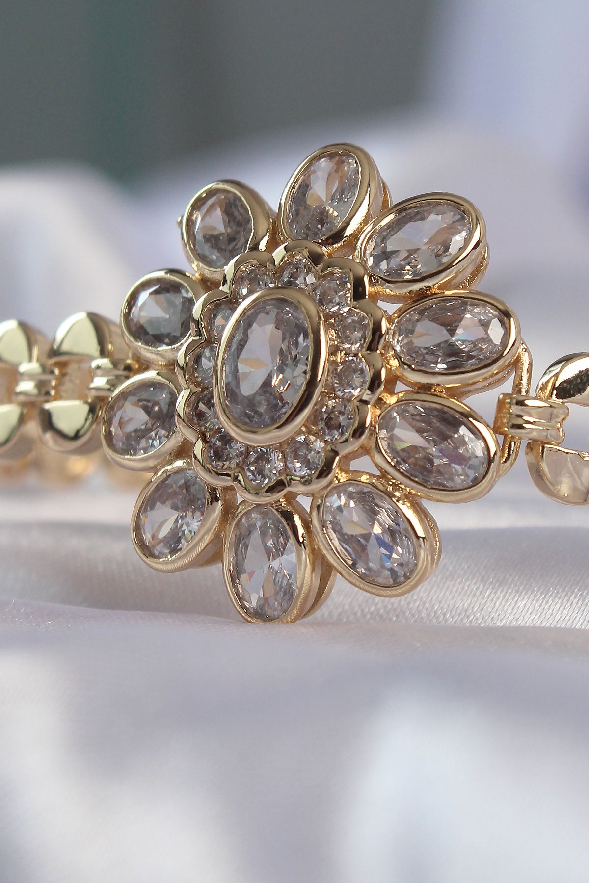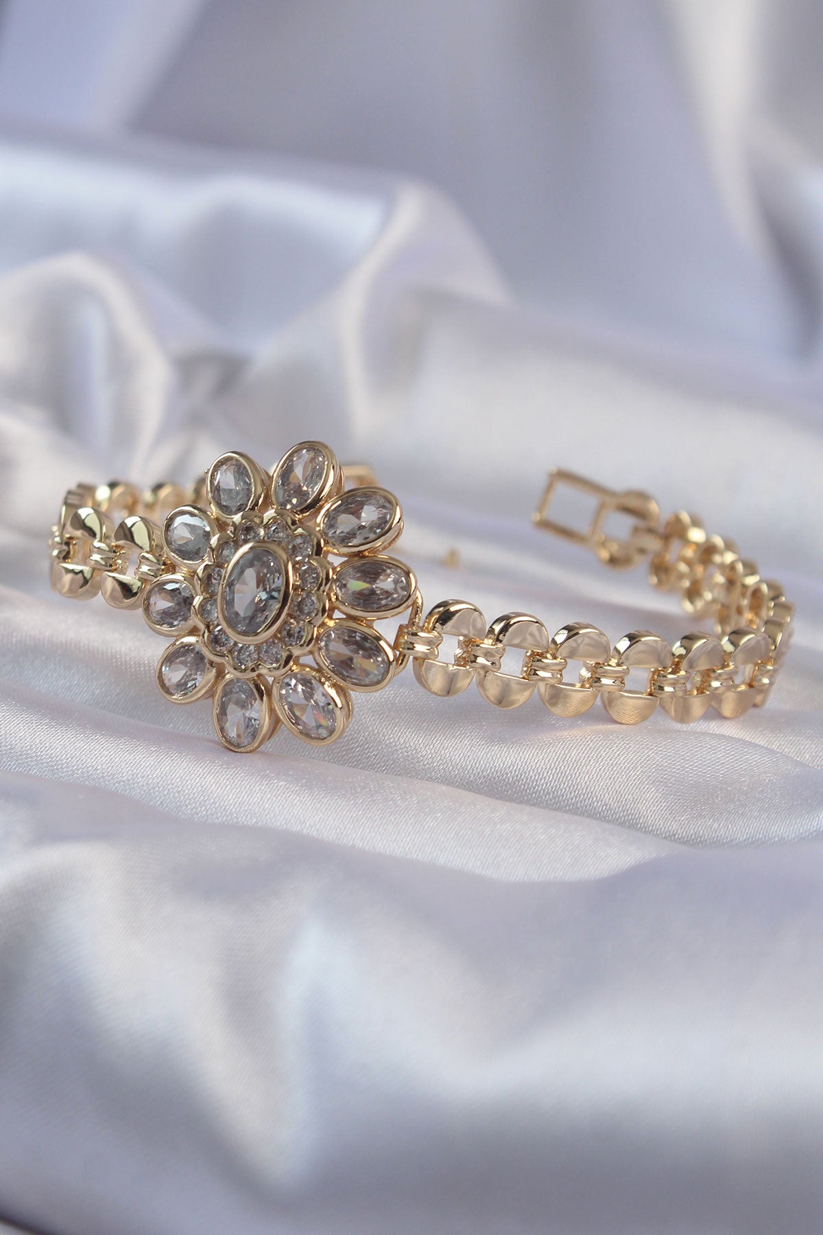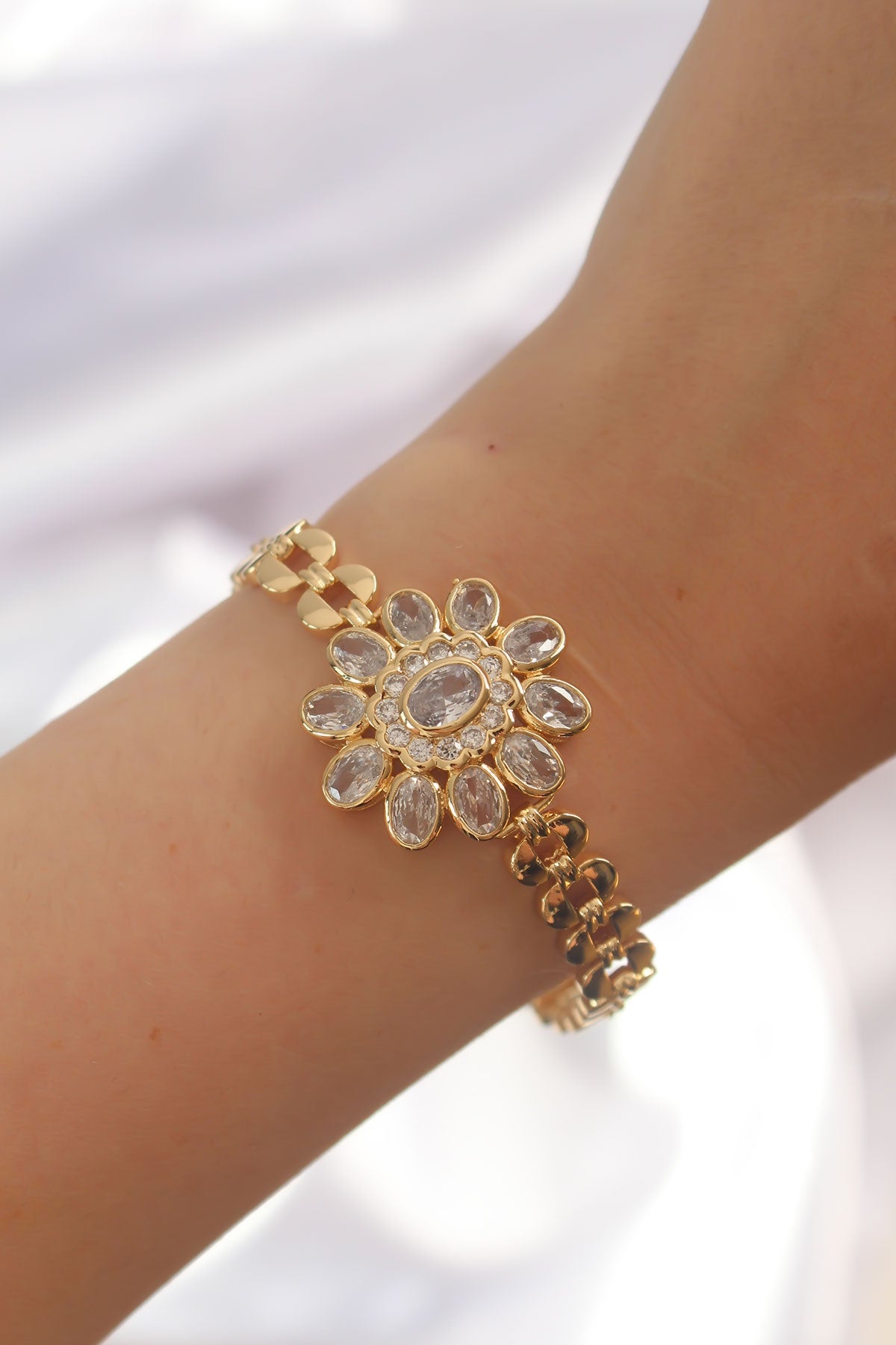 - Ürün Adı: Pirinç Gold Renk İri Zirkon Taşlı Çiçek Figürlü Bileklik