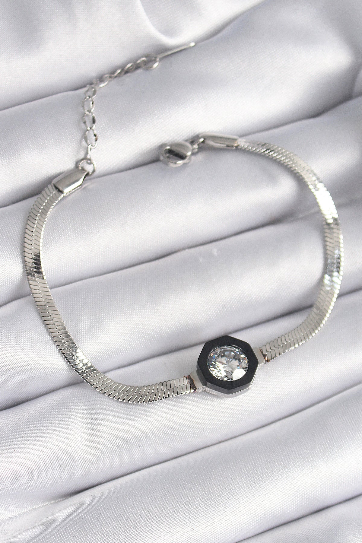 BB6479 - 316L Çelik Gümüş Renk Zirkon Taşlı İtalyan Zincir Model Kadın Bileklik