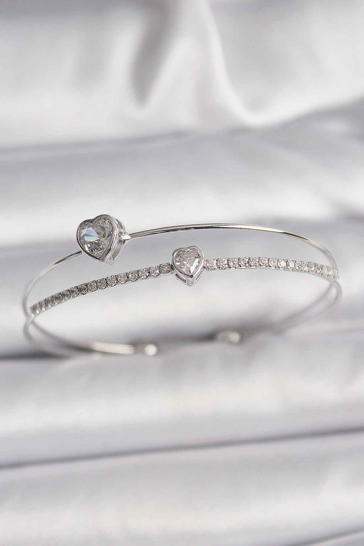 - Ürün Adı: Pirinç Gümüş Renk Zirkon Taşlı Kalp Model Kadın Bileklik