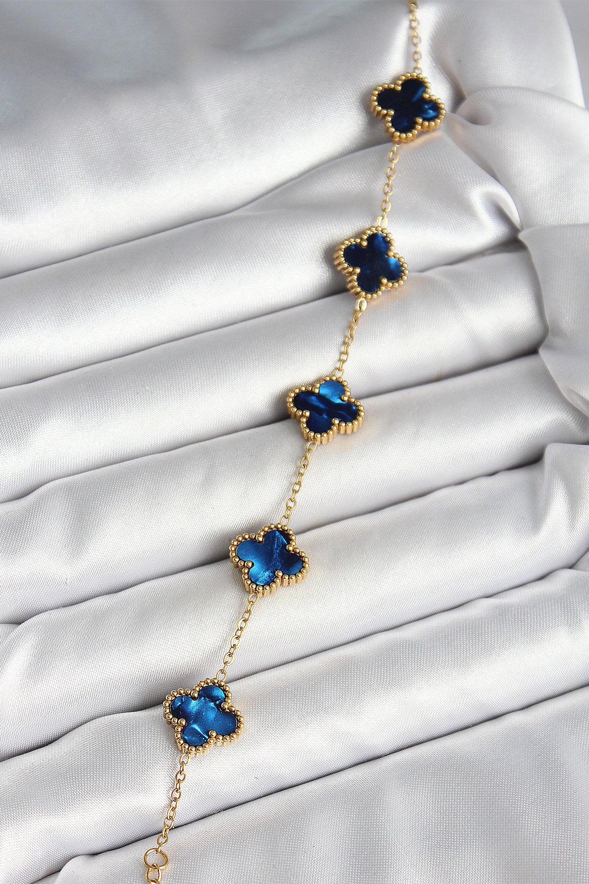 - Ürün Adı: 316L Çelik Sedefli Lacivert Gold Renk Yonca Kadın Bileklik