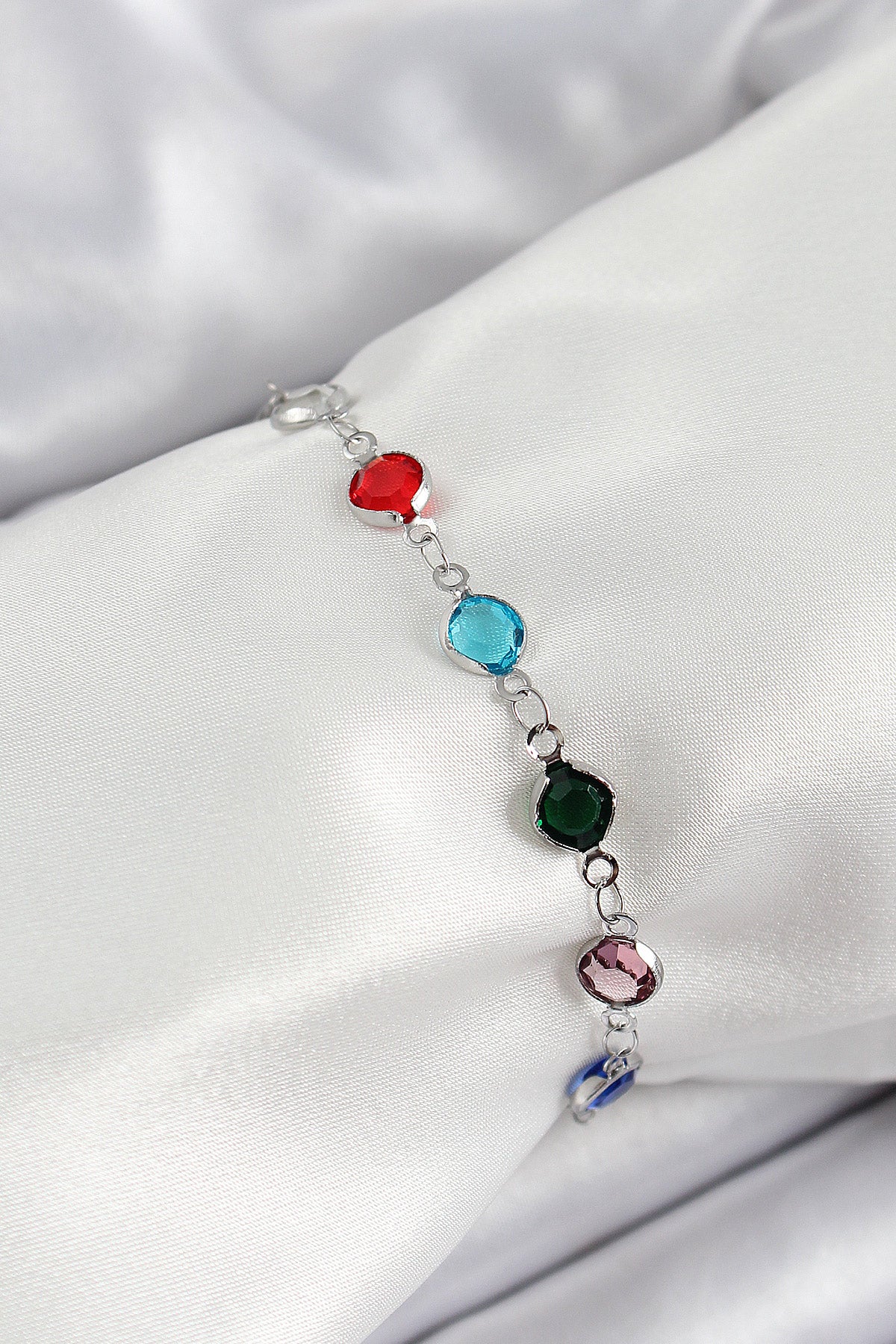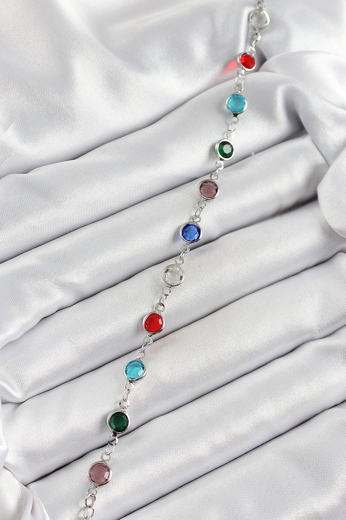 - Ürün Adı: Pirinç Gümüş Renk Karışık Renk Zirkon Taşlı Kadın Bileklik