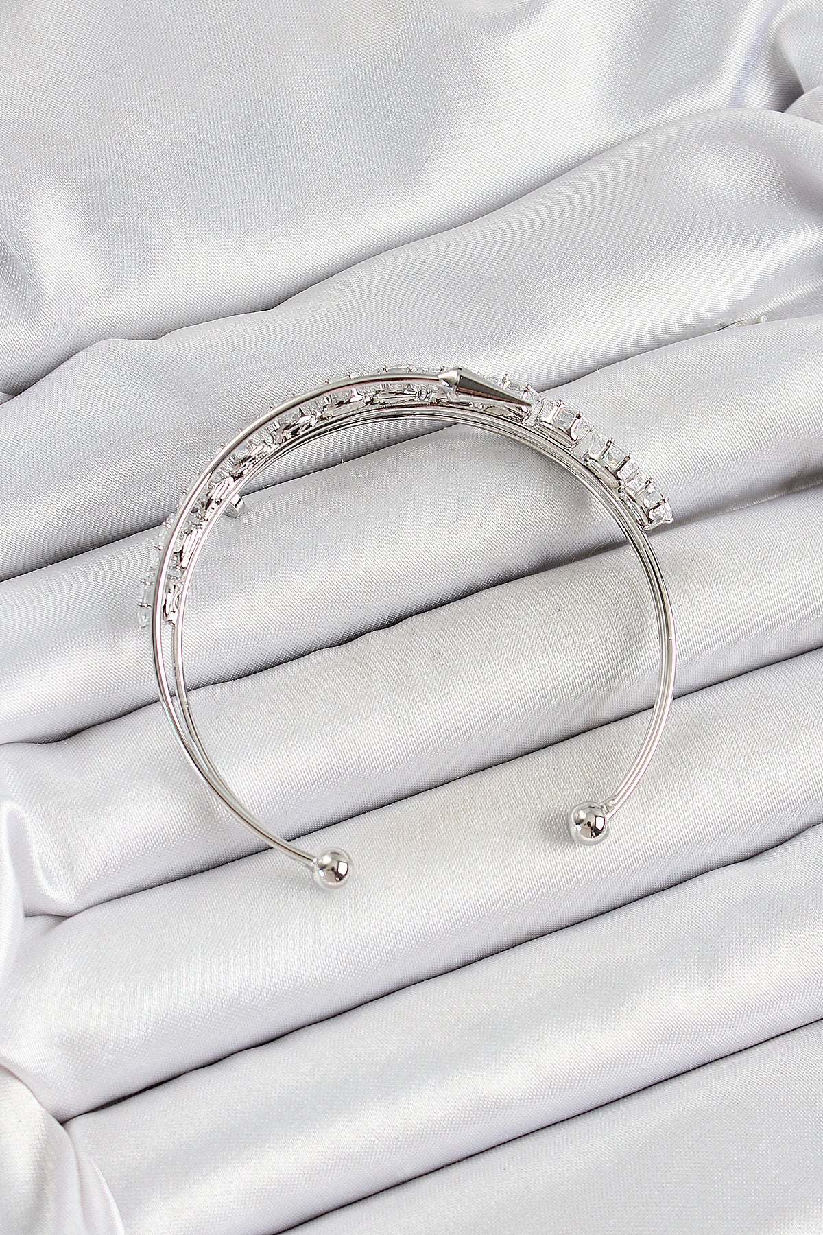 BB7064 - Pirinç Gümüş Renk Arpa Zirkon Taşlı Kadın Bileklik