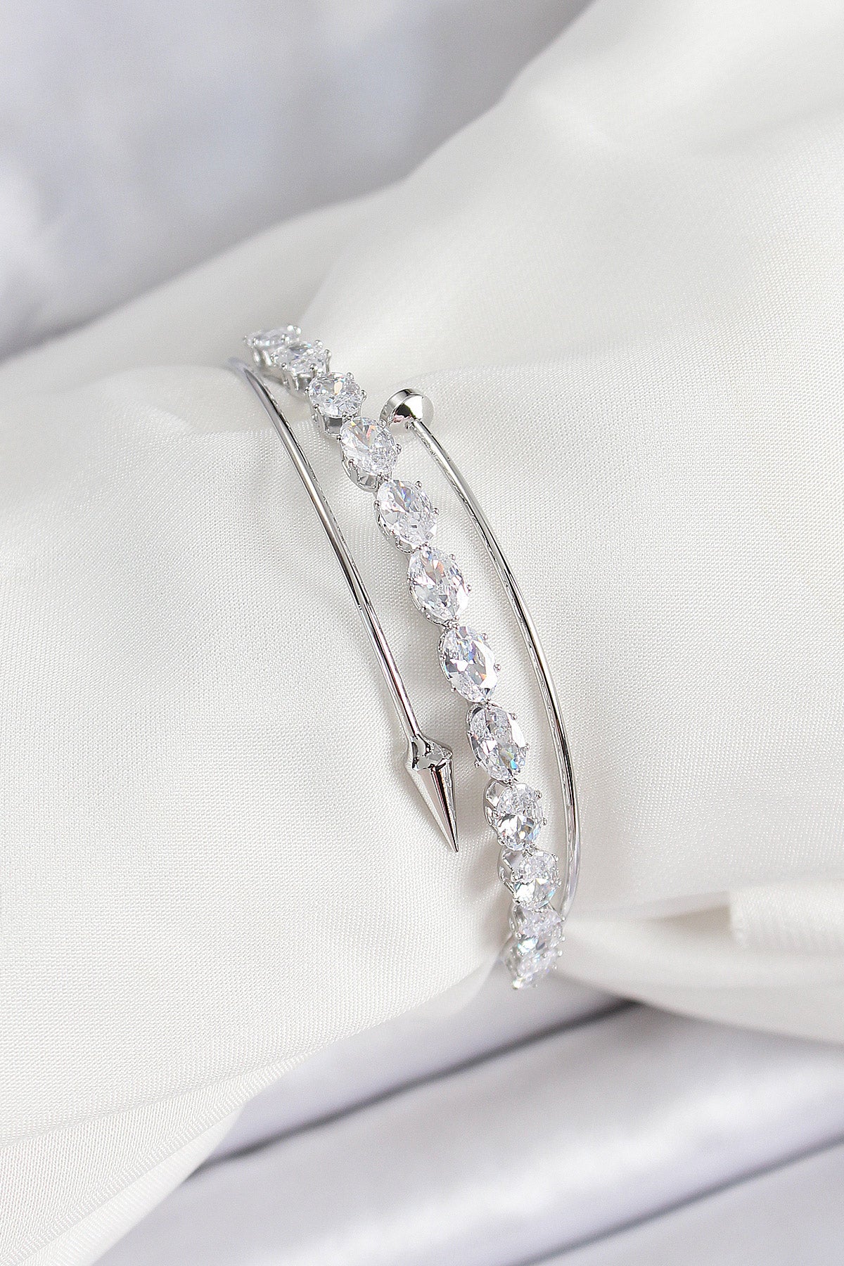 - Ürün Adı: Pirinç Gümüş Renk Arpa Zirkon Taşlı Kadın Bileklik