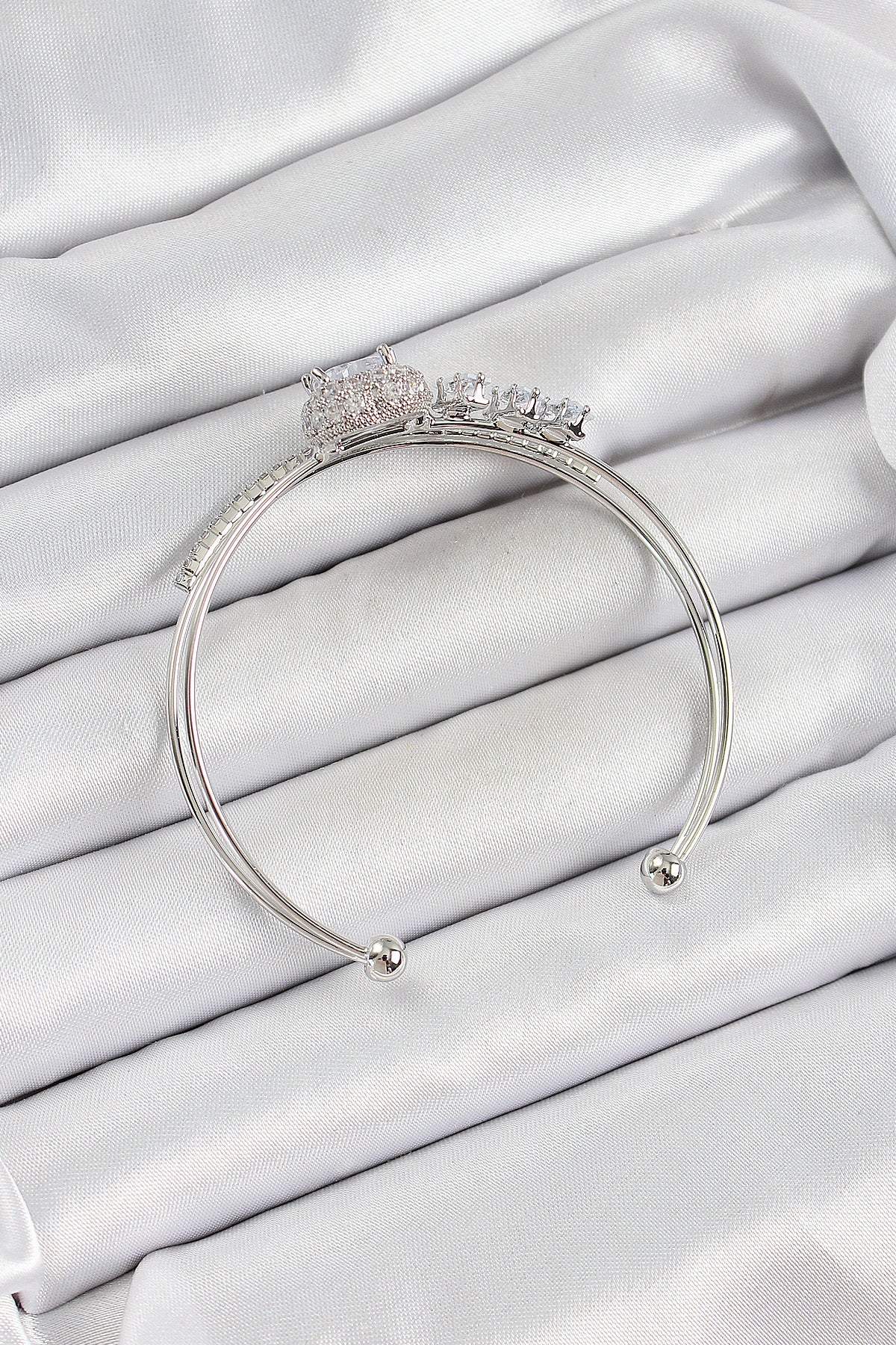 - Ürün Adı: Pirinç Gümüş Renk Kalpli Zirkon Taşlı Kadın Bileklik