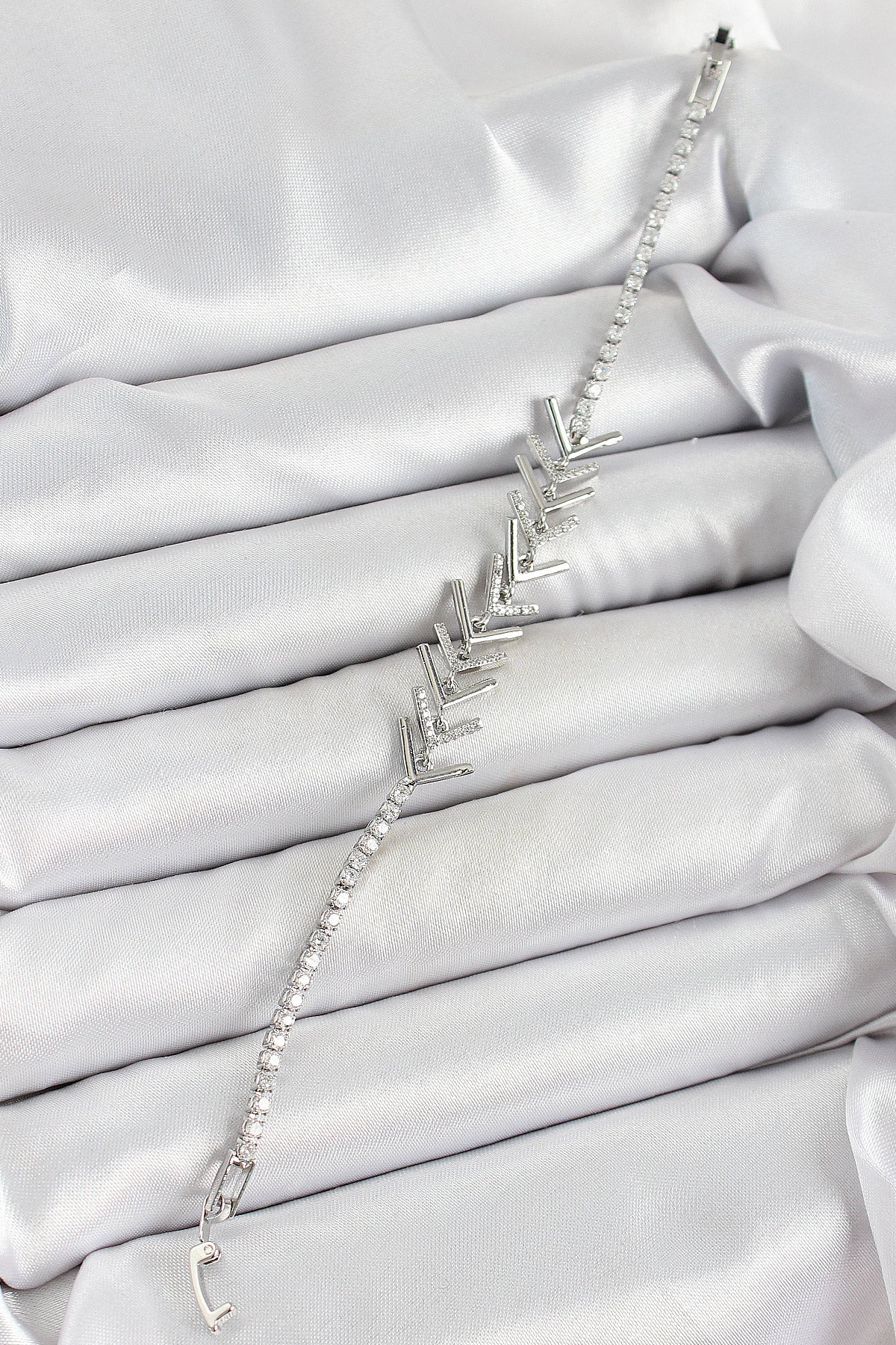 - Ürün Adı: Pirinç Gümüş Renk Zirkon Taşlı Balık Sırtı Kadın Bileklik