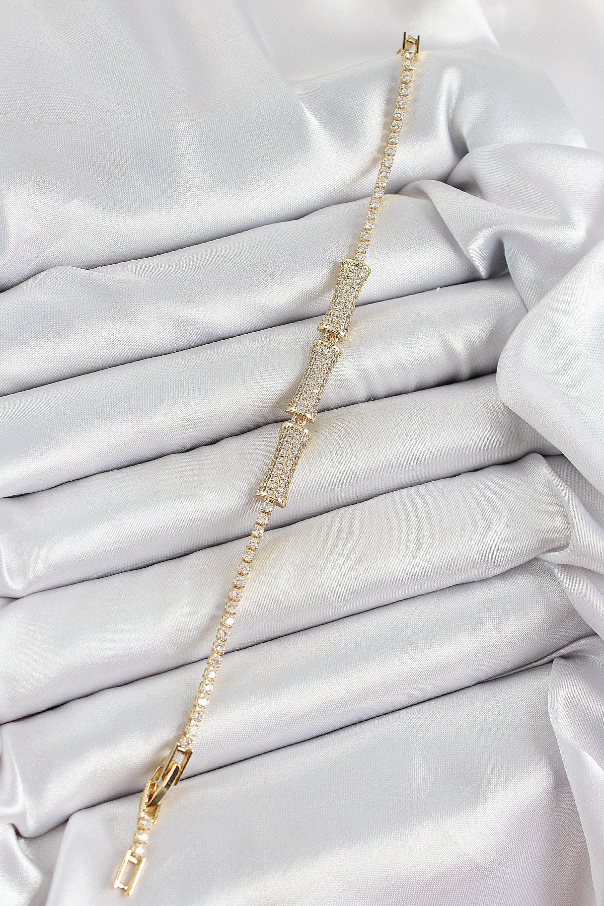 - Ürün Adı: Pirinç Gold Renk Zirkon Taşlı Kemik Model Kadın Bileklik