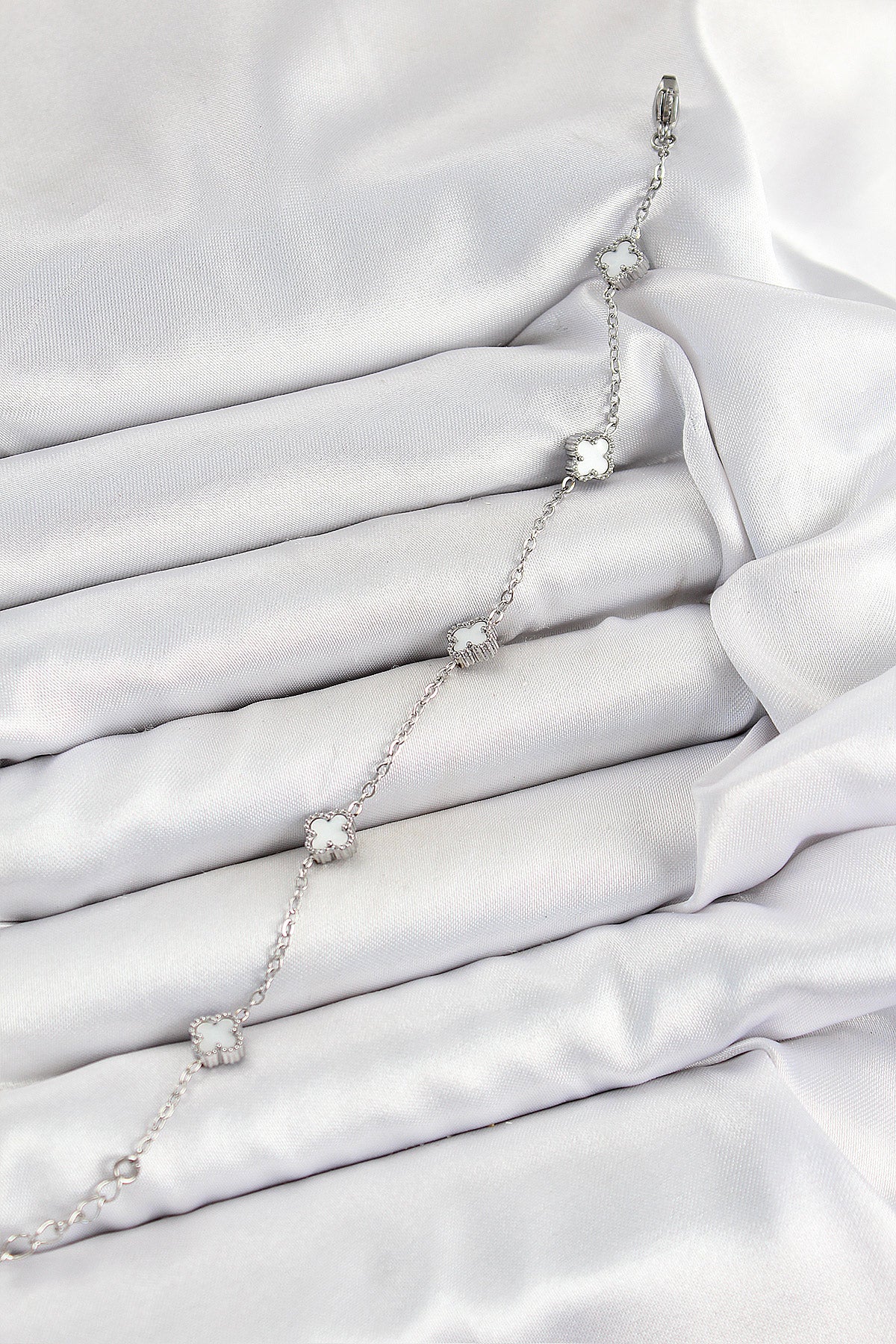 - Ürün Adı: 316L Çelik Beyaz Sedef Yonca Model Gümüş Renk Kadın Bileklik