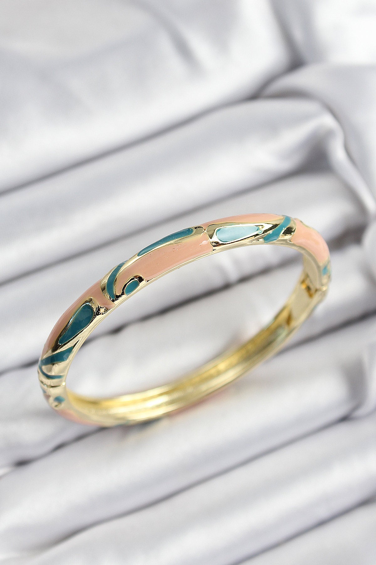 BB7399 - Mineli Pirinç Krem Ve Yeşil Mermer Motifli Gold Renk Kadın Kelepçe