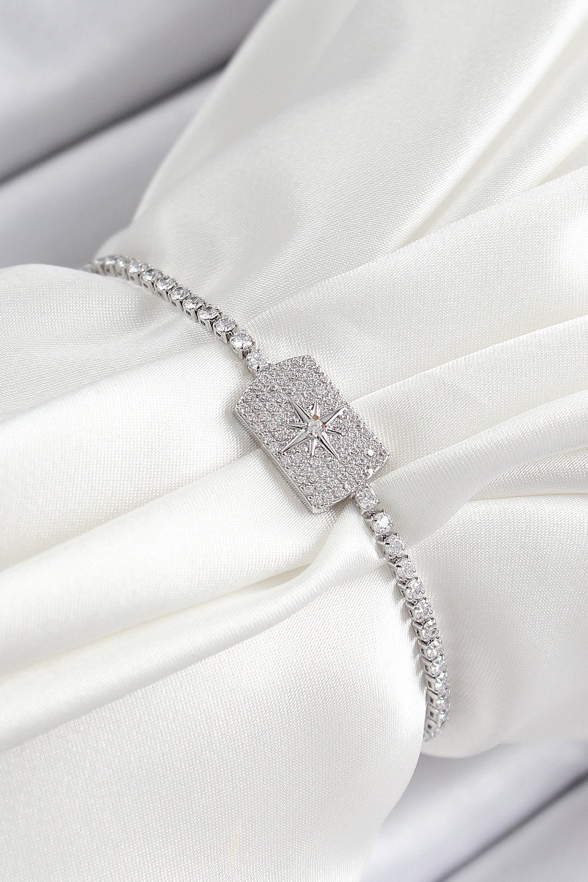- Ürün Adı: Pirinç Zirkon Taşlı Kutup Yıldızı Model Gümüş Renk Asansörlü Kadın Bileklik