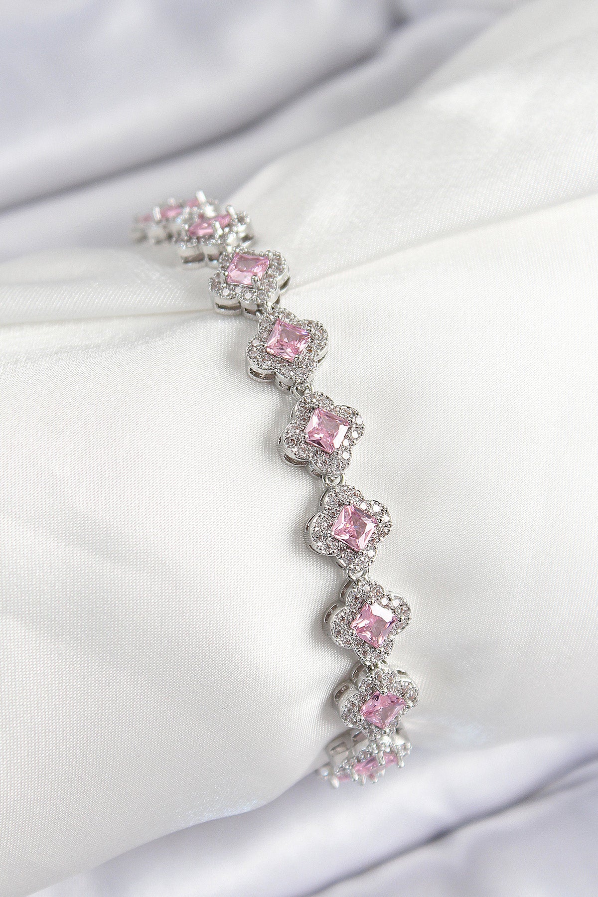 - Ürün Adı: Pirinç Zirkon Taşlı Pembe Yonca Baget Model Gümüş Renk VIP Seri Kadın Bileklik