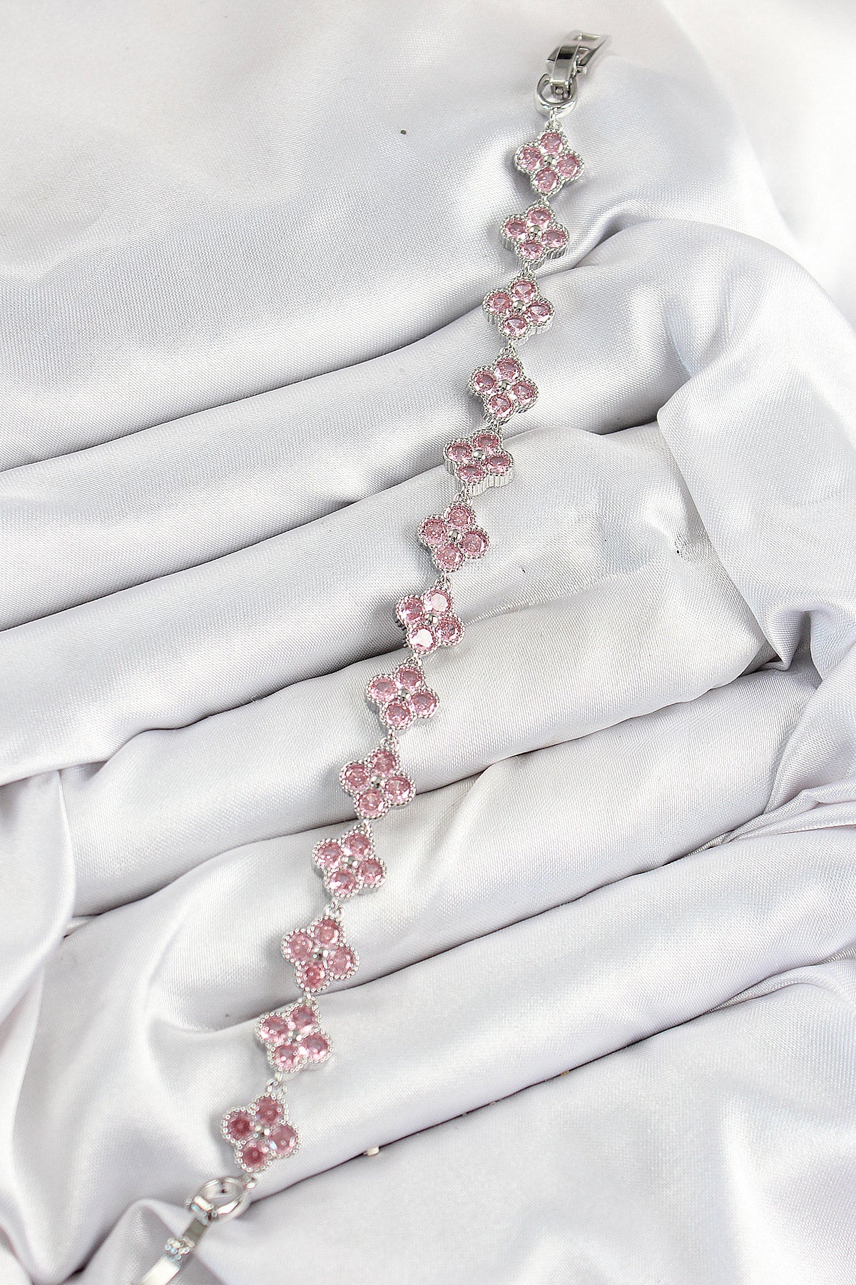 - Ürün Adı: Pirinç Pembe Zirkon Taşlı Yonca Model Gümüş Renk VIP Seri Kadın Bileklik