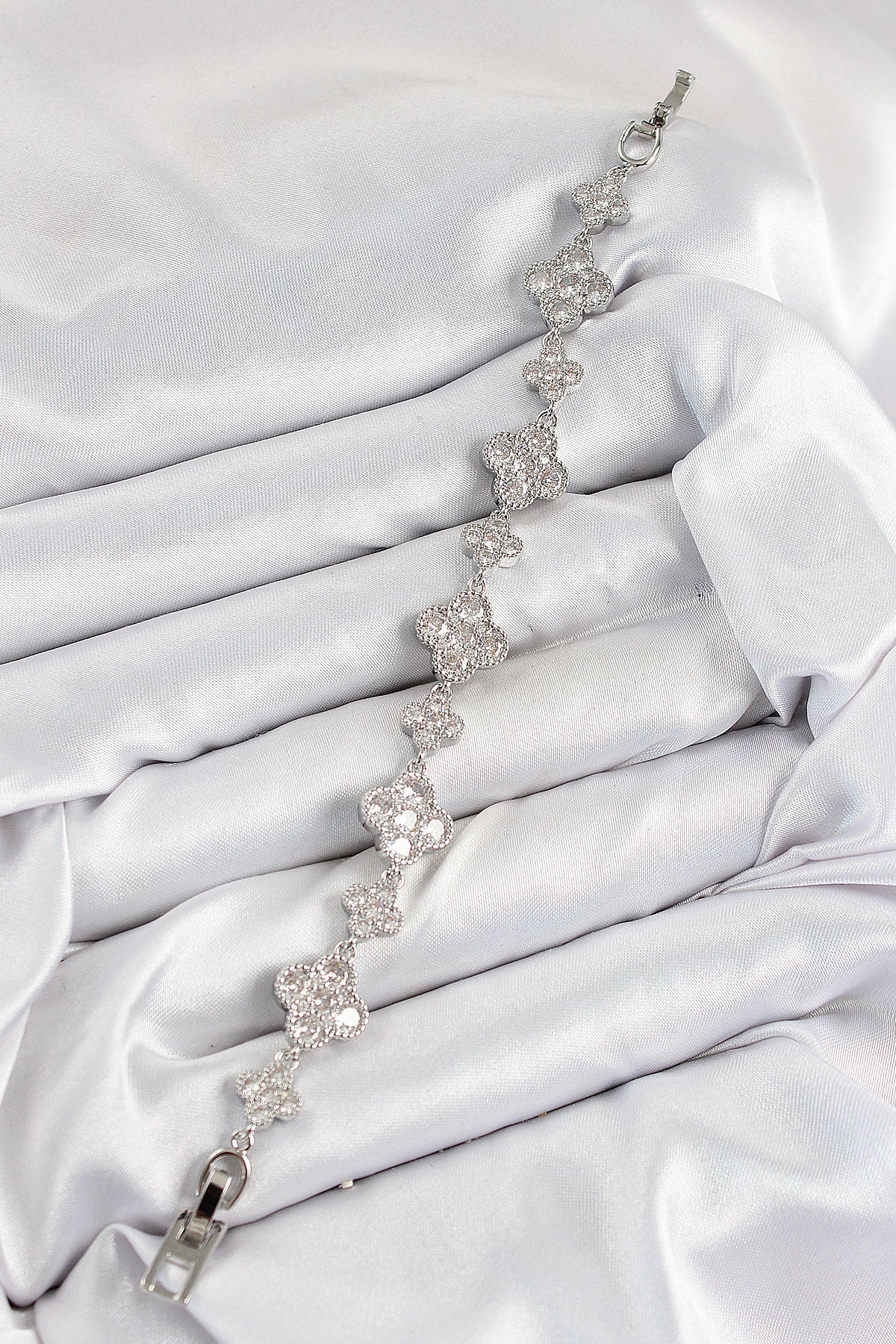 - Ürün Adı: Pirinç Zirkon Taşlı Yonca Model Gümüş Renk VIP Seri Kadın Bileklik