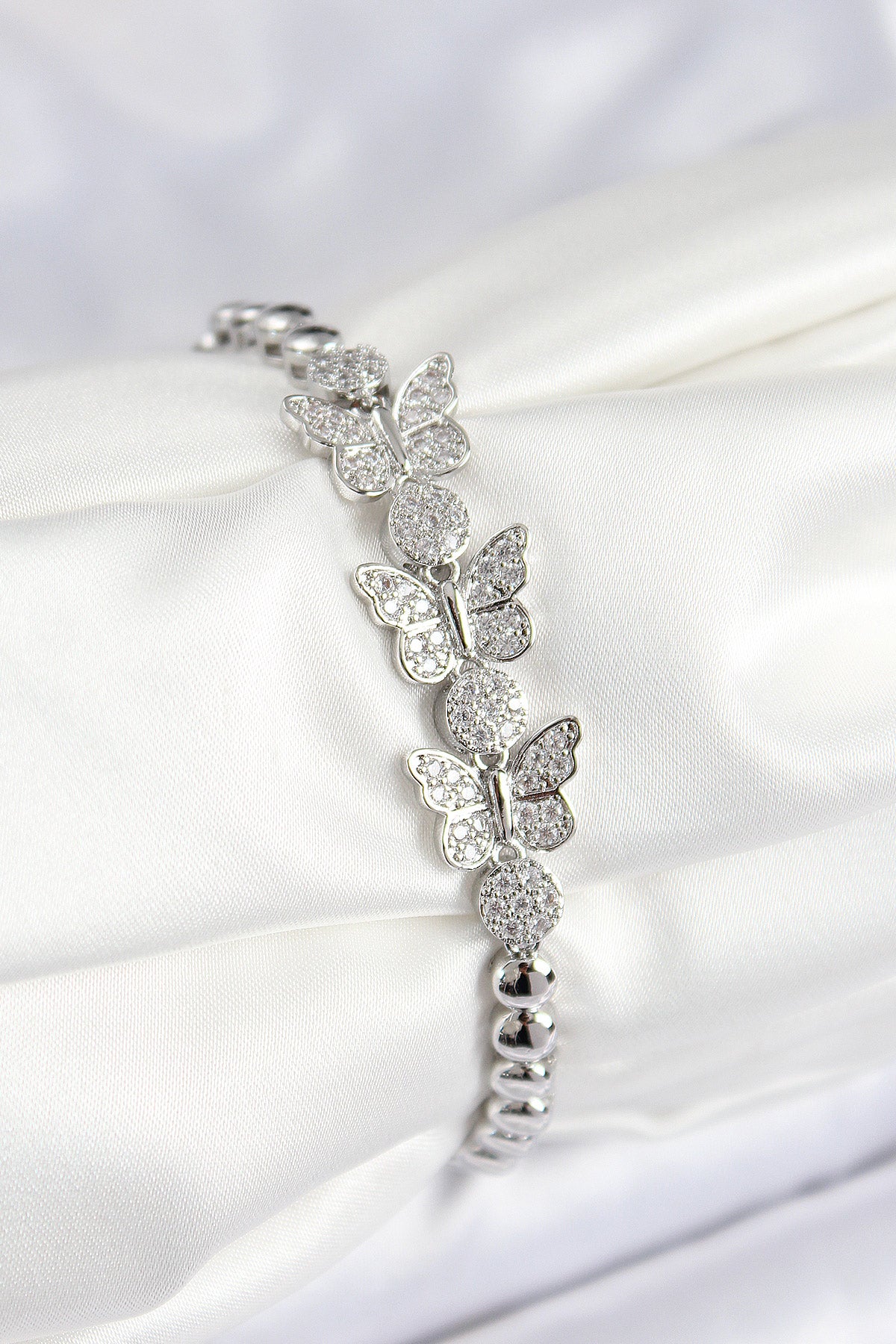- Ürün Adı: Pirinç Zirkon Taşlı Kelebek Model Gümüş Renk Kadın Bileklik