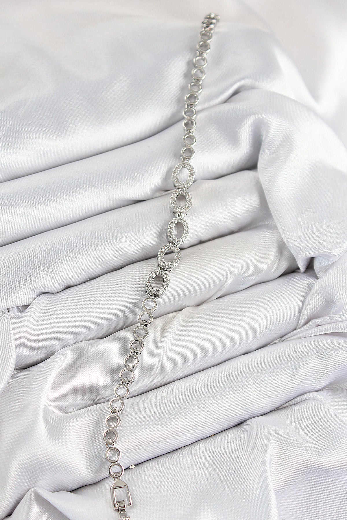 - Ürün Adı: Pirinç Zirkon Taşlı Oval Model Gümüş Renk Kadın Bileklik