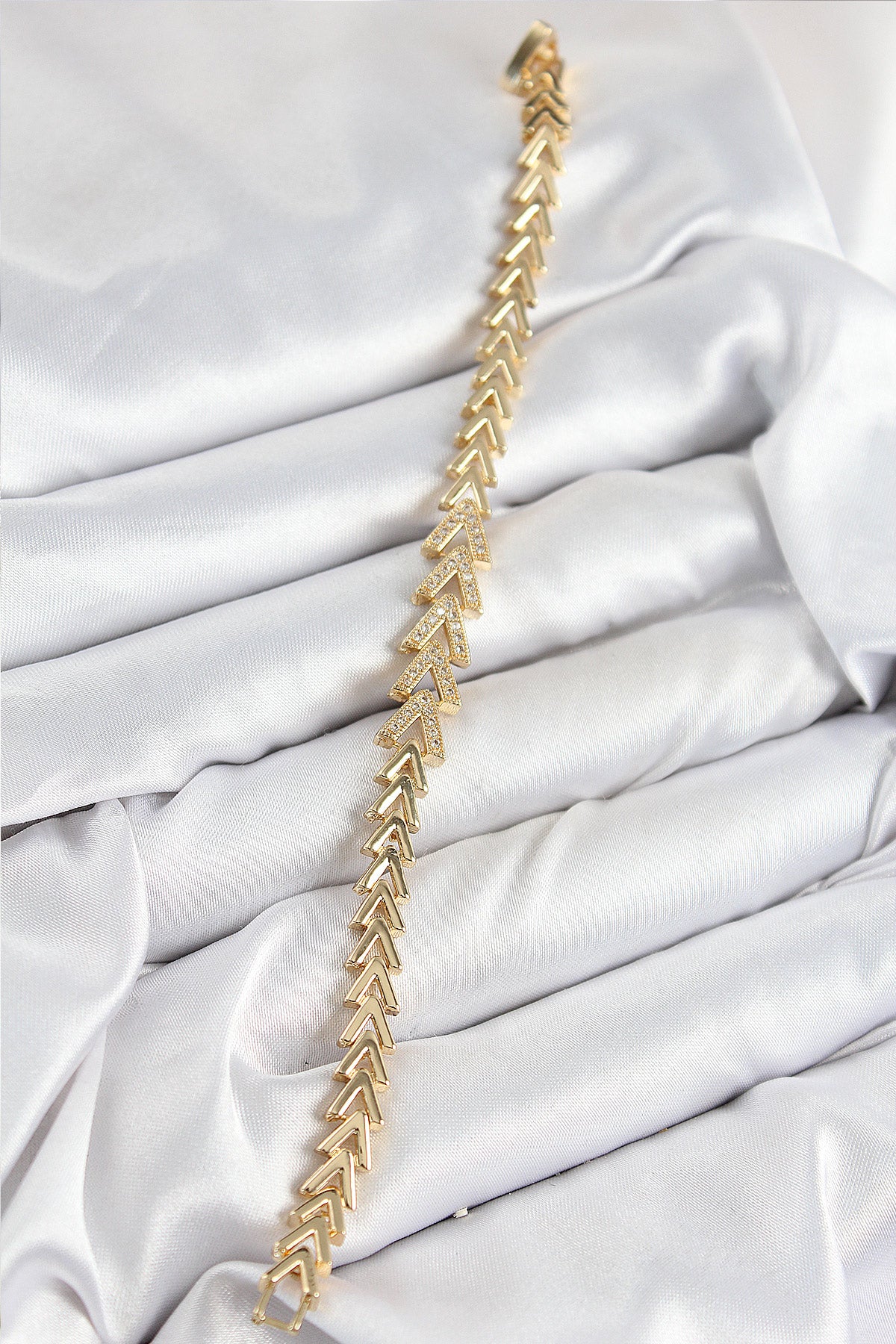 - Ürün Adı: Pirinç Zirkon Taşlı Sıralı Ok Model Gold Renk Kadın Bileklik