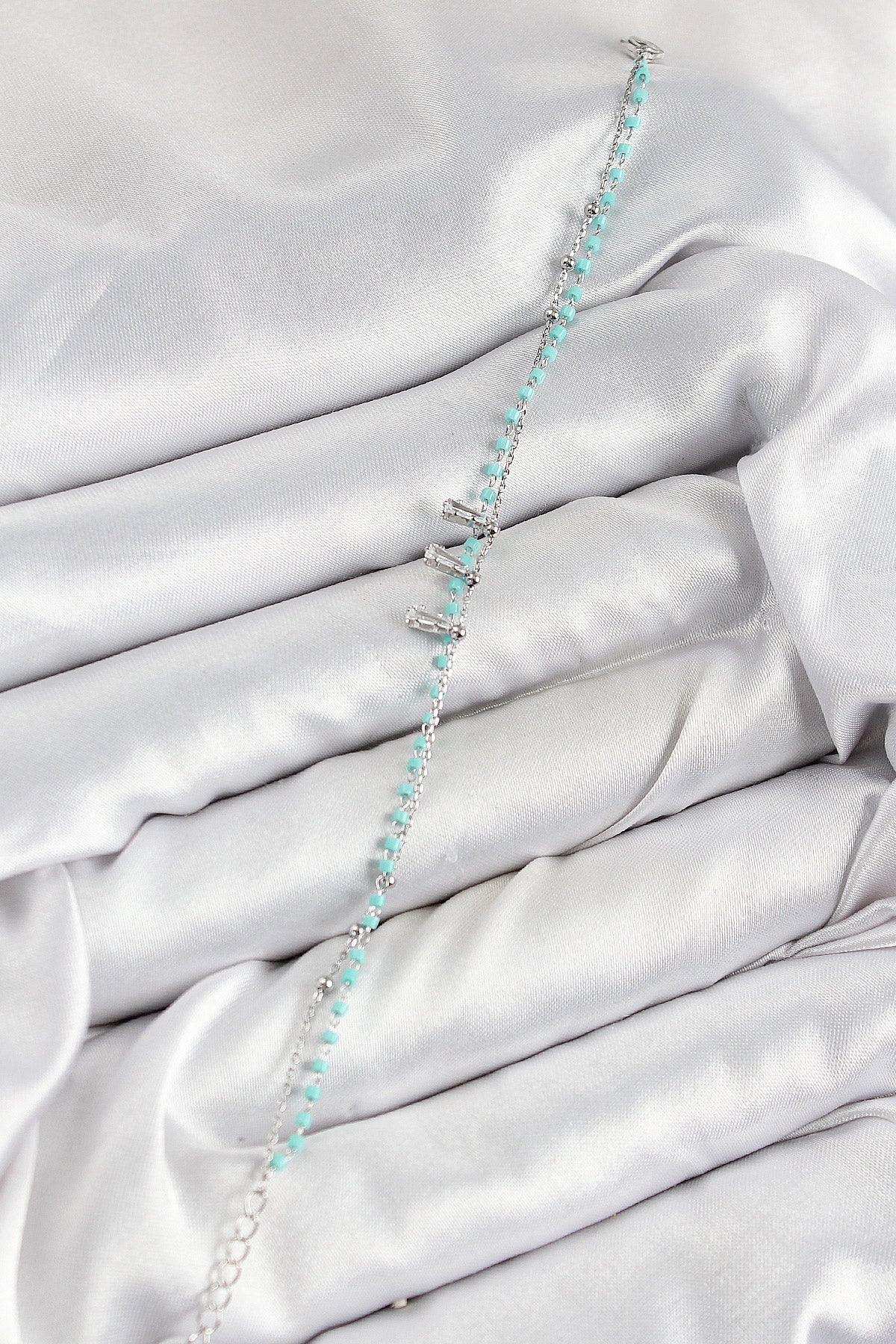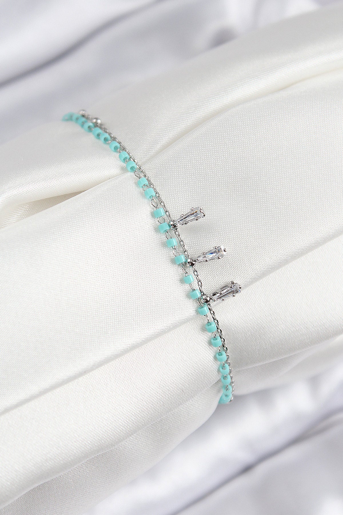 - Ürün Adı: Pirinç Zirkon Taşlı Mavi Boncuklu Model Gümüş Renk Kadın Bileklik