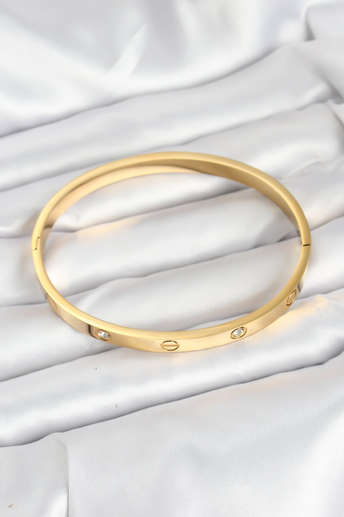 BB7911 - 316L Çelik Gold Renk Zirkon Taşlı 65 mm Kadın Kelepçe Bileklik