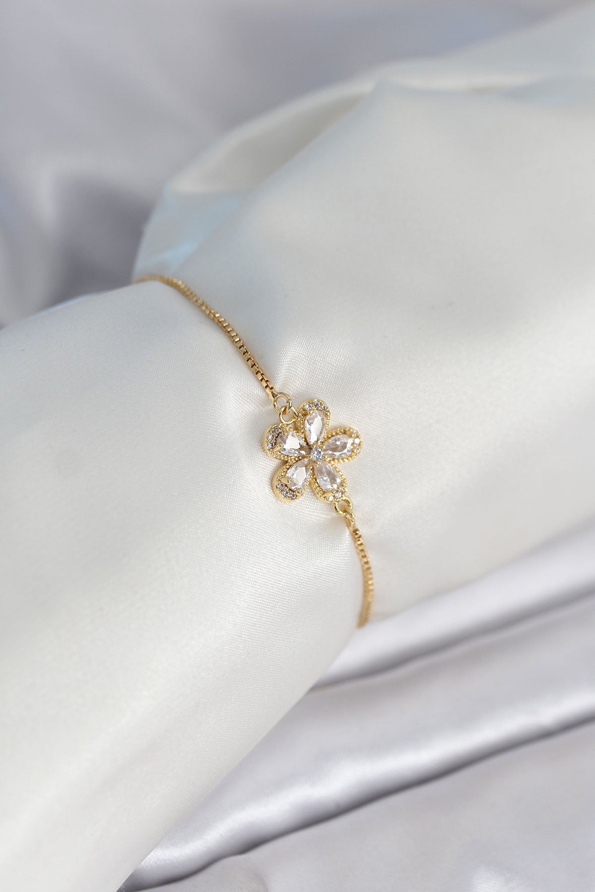 BB8011 - Çiçek Model Asansörlü Gold Renk Kadın Bileklik