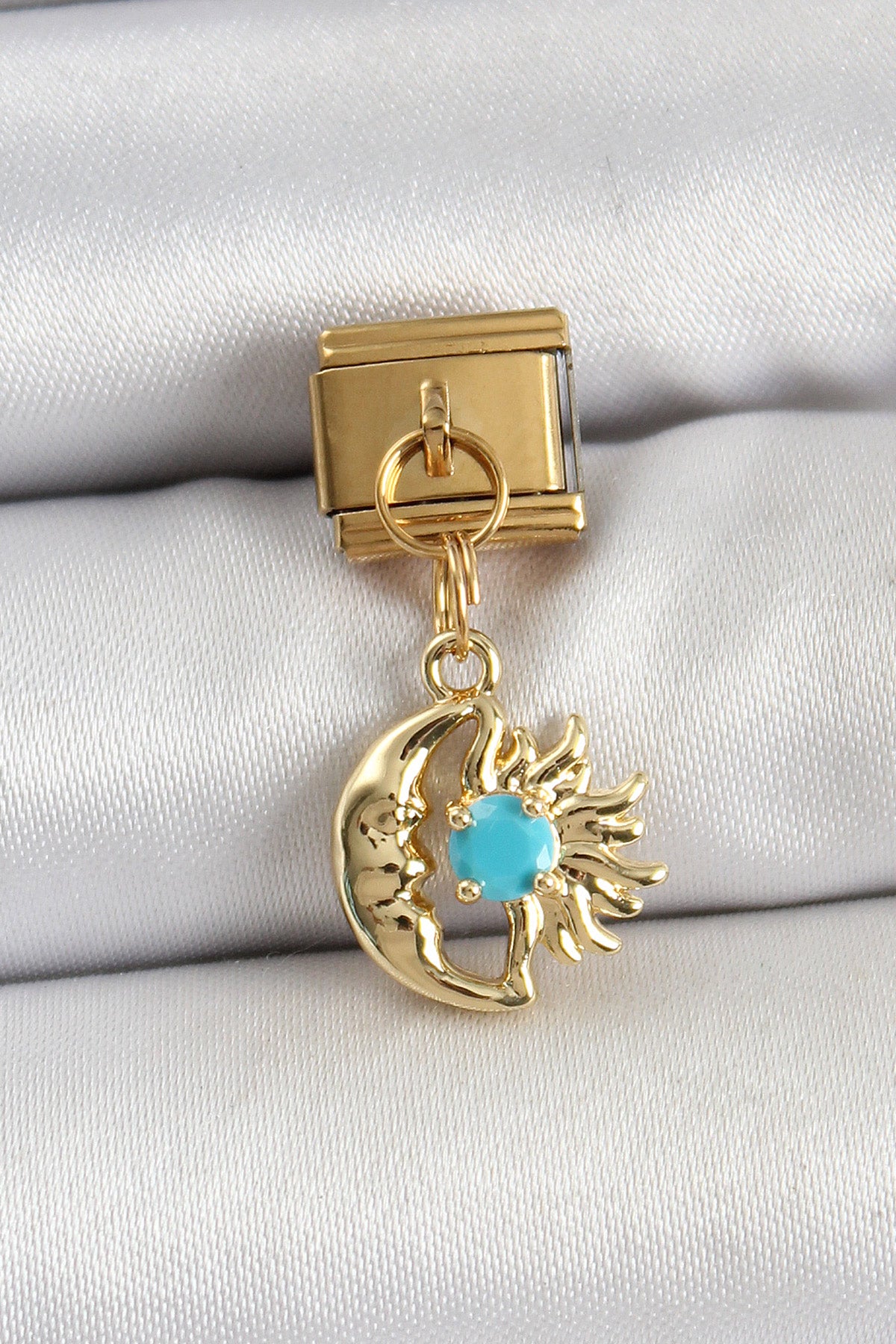 BC1435 - 316L Çelik Sallantılı Ay Ve Güneş Model Gold Renk Nomination Charm