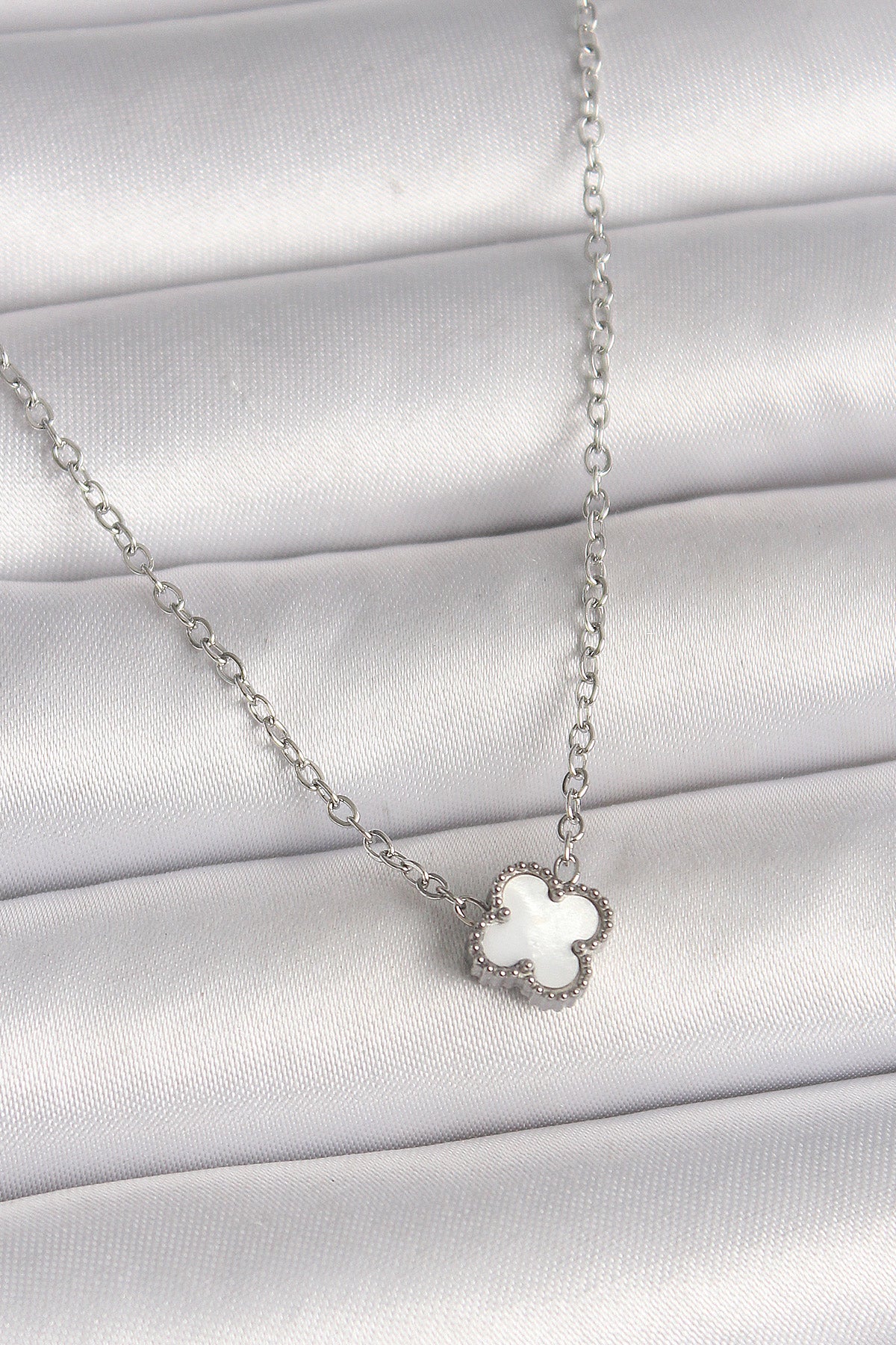 - Ürün Adı: 316L Çelik Gümüş Renk Beyaz Yonca Model Kadın Kolye
