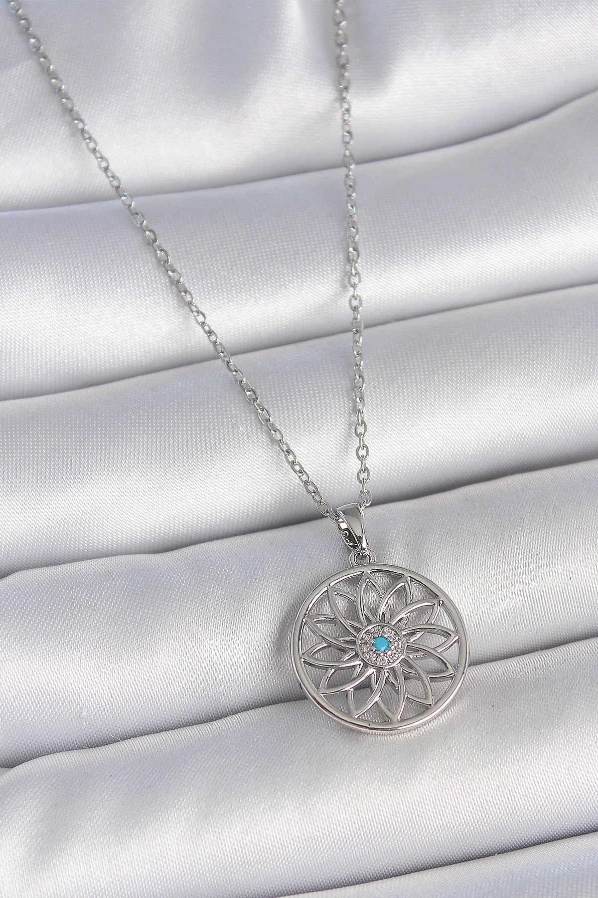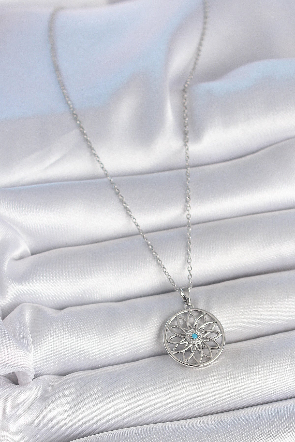 Ürün Adı: | 316L Çelik Gümüş Renk Zincir Mavi Taşlı Lotus Model Kadın Kolye |
