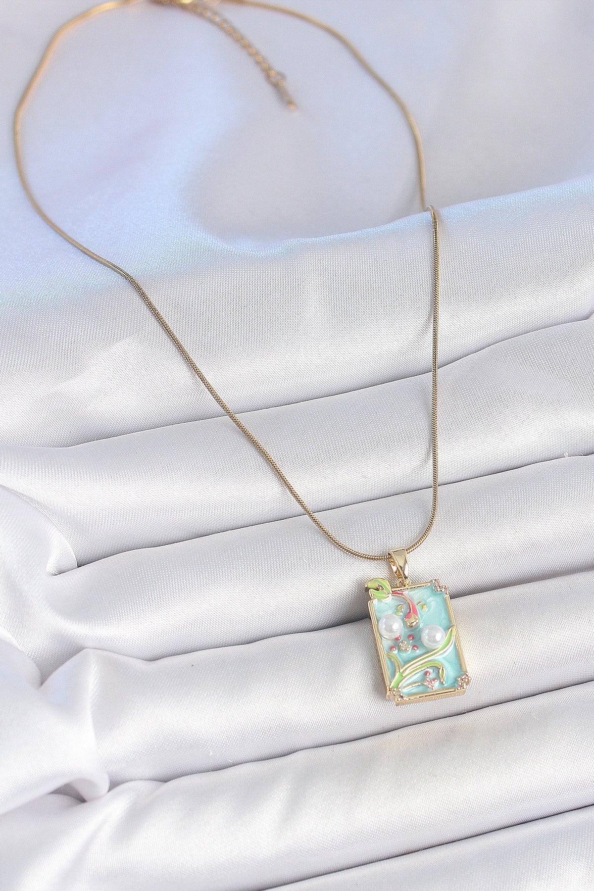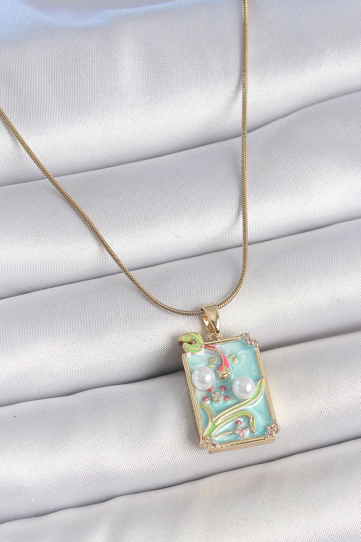 Ürün Adı: | 316L Çelik Gold Renk Zincir Mavi Mineli İncili Çiçek İşlemeli Portre Model Kadın Kolye |