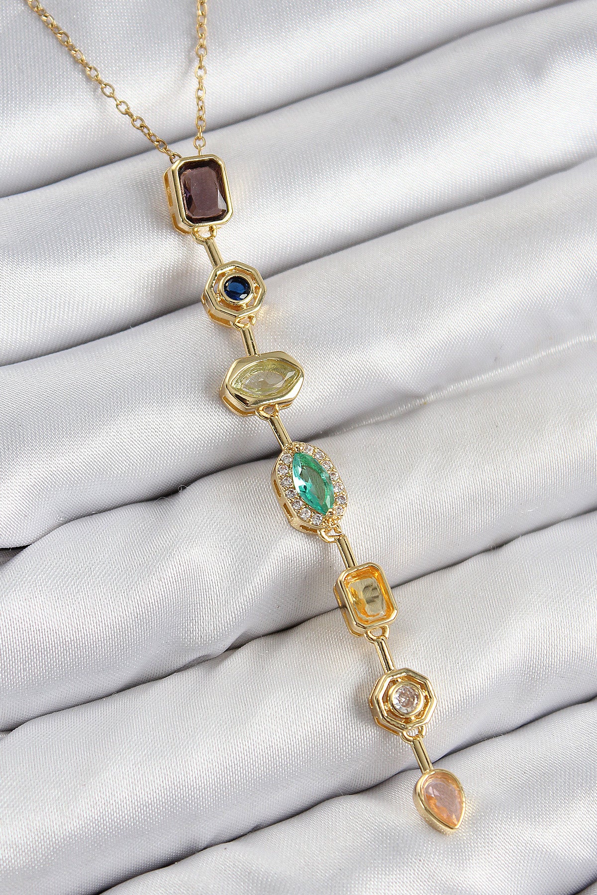 Ürün Adı: | Pirinç Renkli Zirkon Taşlı Model Gold Renk 7 Element Kadın Y Kolye |