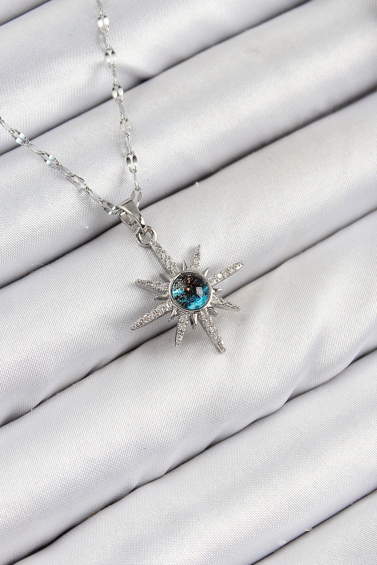 BKO10443 - 316L Çelik Zirkon Taşlı Kutup Yıldızı Model Gümüş Renk Kadın Kolye